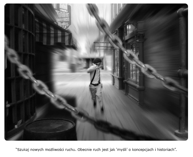 Właśnie w tym celu słuchasz siebie. Wyrabiasz sobie smak, swoje podejście do świata. Następnie wszystko, co się dzieje przesiewasz niczym poszukiwacz złota przez bardziej lub mniej świadomy filtr. Każdego dnia generujesz dużo odpadów, by odnaleźć jedną mała kruszynkę złota. Przede wszystkim musisz być tu i teraz. Zawsze najtrudniej jest zacząć, później już jakoś leci. Ponownie wszystko sprowadza się do bycia "tu" w miejscu, w którym jesteś a nie "tam" w miejscu, którego może wcale nie być. Natomiast kolejna zasada dobrej sztuki brzmi: Wspominałem już, że sam proces twórczy Clouda przypomina zabawę dziecka. Przypomina również działanie szaleńca, który jest niesamowicie przygotowany pod kątem psychicznym i fizycznym do szaleństwa, w które się bawi. Wystarczy posłuchać, jak sam opowiada o swoim procesie twórczym: "Ja po prostu improwizuje, nie zastanawiam się zbytnio, bo gdy zaczynam się zastawiać - mam dość. Czasami mam pojęcie, co robię, a czasami nie." "O to chodzi w sztuce. Próbujesz, aż poczujesz się dobrze." Pamiętasz, że identycznie było przy wymyślaniu "Shiny"? Wiedzieli ze swoim kumplem tylko tyle, że chcą zrobić animacje z rozsypanych na podłodze ciuchów. Wszystko to jest działaniem na instynktach. Niestety nieodzownym elementem tego typu działań jest popełnianie błędów, której to czynności nie należy się bać. By to wszystko zastosować, potrzebna jest kreatywność. Improwizacja wymaga kreatywności. A skąd się bierze kreatywność? Z potrzeby, jak również z ukrytego w głębi duszy dzieciaka. "Tutaj trzeba działać jak dziecko. Dziecko patrzy na to, co ma, co może z tego zrobić i zaczyna budować. Nie rozmyśla czy się da, czy czegoś brakuje. Po prostu robi z tego, co ma." To powód, dla którego Daniel tak bardzo chce wrócić do dziecięcych instynktów, o których pisałem tak wiele razy wcześniej. Po za tym, dzieci mają jeszcze jedną inną super moc. Kompletnie nie interesuje ich, co mówią inni. Nie zamykają się na żadne możliwości rozwoju. Każda droga jest dla nich ciekawa, a każda możliwość daje im masę kolejnych możliwości, to z kolei ponownie Cloudowe korzystanie ze wszystkich dziedzin sztuki. Wszystko jest połączone. Kiedy już zrozumiemy tę miłość do bycia dzieckiem dojedziemy w pewnym momencie do jego drugiej natury, która z tym dzieckiem walczy. Chodzi o naturę perfekcjonisty. Kiedy jest już pomysł, historia i należy to dopracować, to wtedy właśnie: Jego świetne przygotowanie motoryczne wyuczone przez tak wiele lat z breakingiem, a także pamięciowo - choreograficzne zdobyte przy pracy z Madonną pozwala mu w fantastyczny sposób panować nad jakością ruchu. Kluczem tutaj jest powtarzanie i ciężki trening, ponieważ sam pomysł się nie obroni, jeśli wykonanie będzie słabe. I teraz pytanie: „Jakie posiadasz?" "Po prostu dokańczaj sprawy. Staję się maniakiem kontroli. Muszę to zobaczyć wyraźnie w mojej głowie. Jestem zdecydowanie wielozadaniowcem. Jest wiele rzeczy, które chcę ogarnąć i staram się to zrobić na raz. Z jednej strony to dobra rzecz, ale zła dla detali, przez co je pomijam lub przykładam do nich zbyt mało uwagi. Dlatego staram się skupić całą moją uwagę na jednym elemencie jak najlepiej potrafię i następnie składać te pojedyncze klocki w jedną całość." Problemem przy tworzeniu jest również to, że zazwyczaj twórca nie lubi oglądać sam siebie. W dodatku będąc ciągle niezadowolony ze swojego wykonu tworzy się niekończąca pętla poprawiania. Nie inaczej jest w przypadku Daniela. Jak Cloud sobie z tym radzi? Bycie artystą to bardzo trudna droga. To wieczne zmaganie się z samym sobą, bezustanne dążenie do perfekcji, której nie da się doścignąć. Dodatkowym problemem bywa jeszcze finansowanie. Jakkolwiek w przypadku Clouda na jego obecnym etapie życia nie jest to wielki problem, tak dla kogoś, kto zaczyna może to być bariera nie do przebicia. Chociaż należy tu pamiętać o dziecięcym podejściu: "Robię z tego, co mam." By podsumować cały proces twórczy Daniela pozwoliłem sobie stworzyć małe kompendium kilku kroków. Tak by uporządkować ten niesamowity chaos myślowy, jaki zapewne masz po przeczytaniu tego rozdziału.