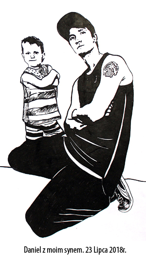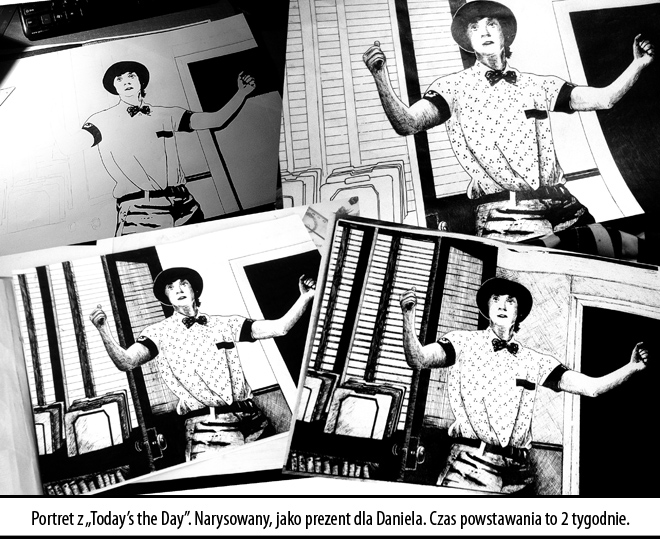 Dwudziestego trzeciego lipca mój mały synek obchodził swoje trzecie urodziny. Zapytałem Daniela, czy nie zechciałby zrobić mu niespodzianki i pojawić się u nas na mini urodzinach. Daniel zgodził się bez wahania. Ustalonego dnia, poszedłem po niego i wspólnie przyszliśmy do pokoju mojego małego artysty. To właśnie wtedy po drodze sporo rozmawialiśmy o Madonnie, Bruce Lee i innych. Nigdy nie zapomnę miny mojego syna, gdy zobaczył swój prezent urodzinowy. Daniel spędził z nami trochę czasu, pomógł dmuchać tort, obejrzał nagrania z jego tańców (do Cloudowych produkcji) a nawet obejrzał pokaz na żywo. Gabryś wywarł na nim naprawdę ogromne wrażenie. Skradliśmy od Daniela autografy i wymieniliśmy się kontaktami, ponieważ Daniel chciał filmiki Gabrysia. Dostał od nas również mały prezent - ręcznie rysowany portret z kadru produkcji Todays the Day, widoczny trochę wyżej przy okazji pisania o tej właśnie produkcji.