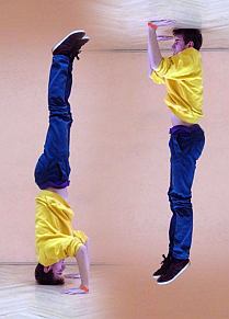 Podobne zjawisko można zauważyć w innych filmikach dotyczących właśnie gimnastycznego stawania na głowie.