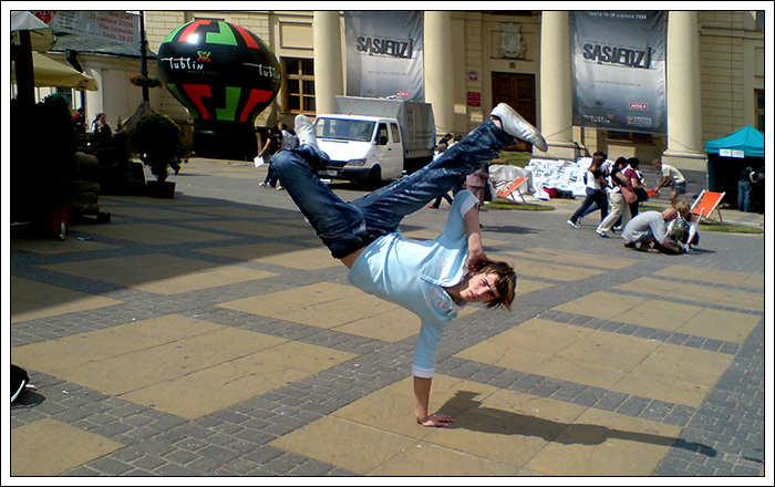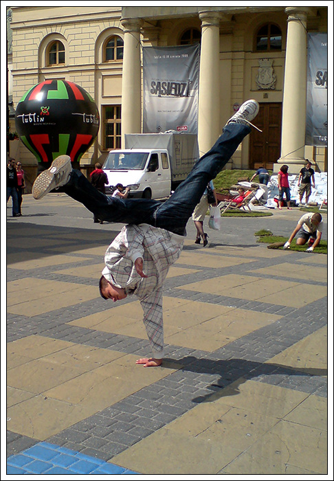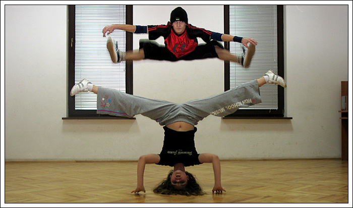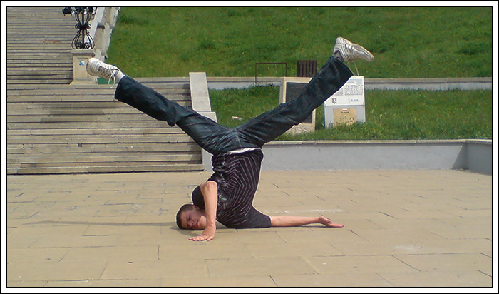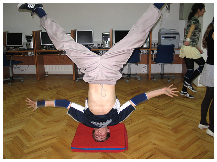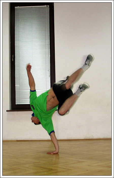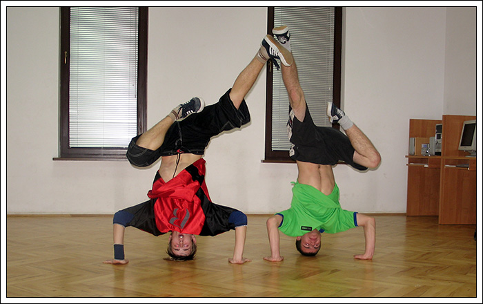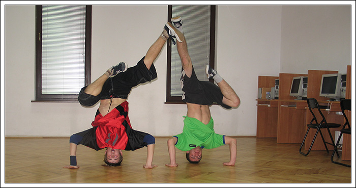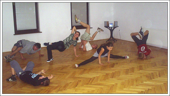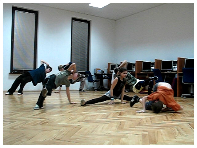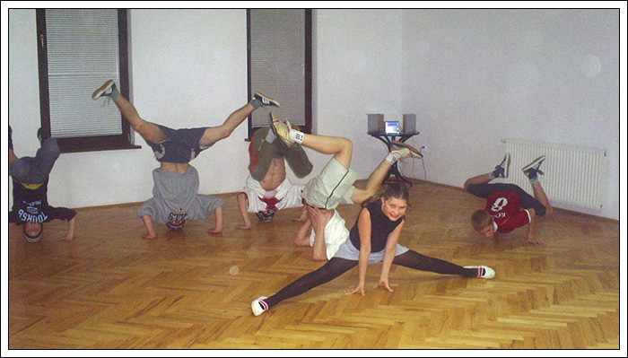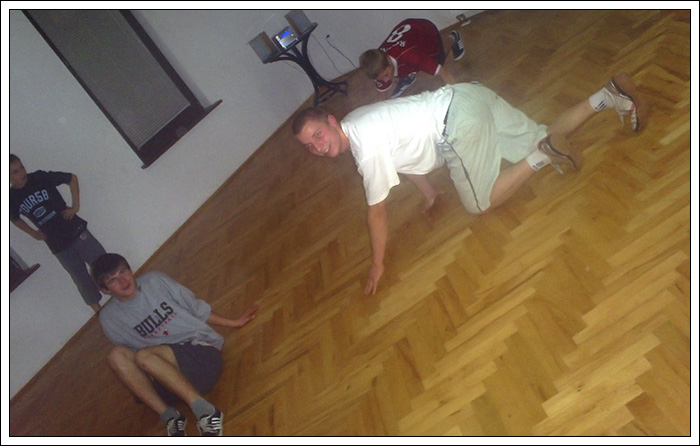 Podczas wakacyjnej przerwy postanowiłem, że Break Dance powinien być bardziej znany, ponieważ to piękna pasja, wymaga poświęceń pracy i chęci, kształtuje charakter i pozwala oderwać się od codzienności. Dlatego też znalazłem troszkę czasu by stworzyć nową grupę początkującą. Jak na razie mamy 6 osób i mam nadzieję na więcej. Jeśli dobrze pamiętam te osoby to Biała, Czarna, Bracia Bliźniaki, mały mazi (hehe) oraz Cinek. Ponieważ wiedza trzymana dla siebie, jest wbrew zasadzie bboyingu. Postaram się zarazić jakieś nowe serduszka miłością do tego tańca, nie wiem na ile będę w stanie tego dokonać. Wiem jednak, że dam z siebie wszystko by osiągnąć zamierzony cel.