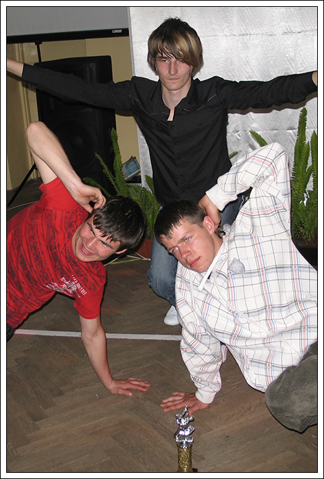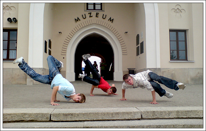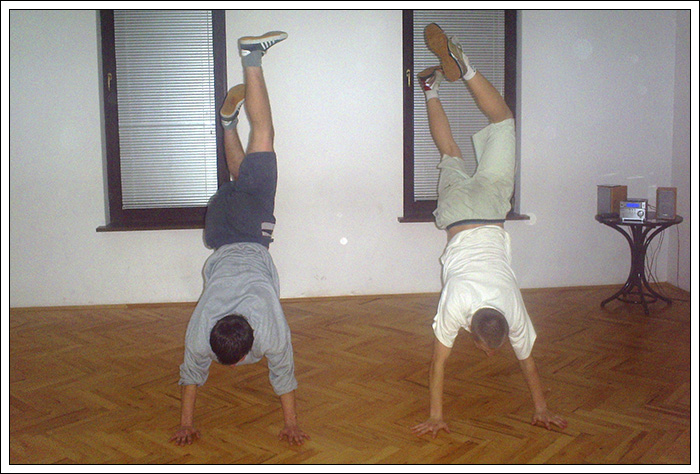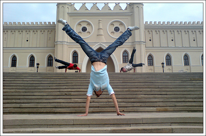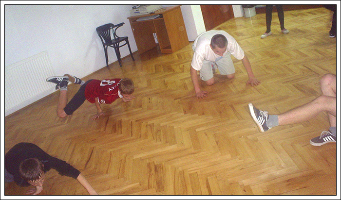 Kolejnym świetnym przeżyciem były warsztaty we Włodawie „Powrót do korzeni” Zajecie prowadzili dwaj czołowi B-Boye ze wschodu. B-Boy Rafuls (z którym spotkaliśmy się już kolejny raz) rozwijał on szeroko pojęty Toprocking, pokazał nam sposoby na trenowanie footworku, dał wiele rad odnośnie stylu, Drugim instruktorem był B-Boy Adasiowy którego najmroczniejszą stroną były Power Movesy. Warsztaty wniosły w nasze życie nowy zapał i nauczyliśmy się wielu rzeczy. Dodatkowo przywiozłem z tych warsztatów pamiątkowa koszulkę a Tiger wrócił z czaderską czapką. Nie pozostało nam nic innego jak ponowne katowanie nowych tricków. To nasz pierwszy wyjazd na 100 % bboyingowy warsztat to także pierwsza moja wizyta we Włodawie.