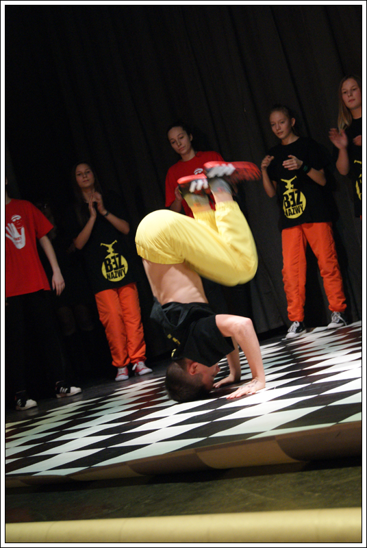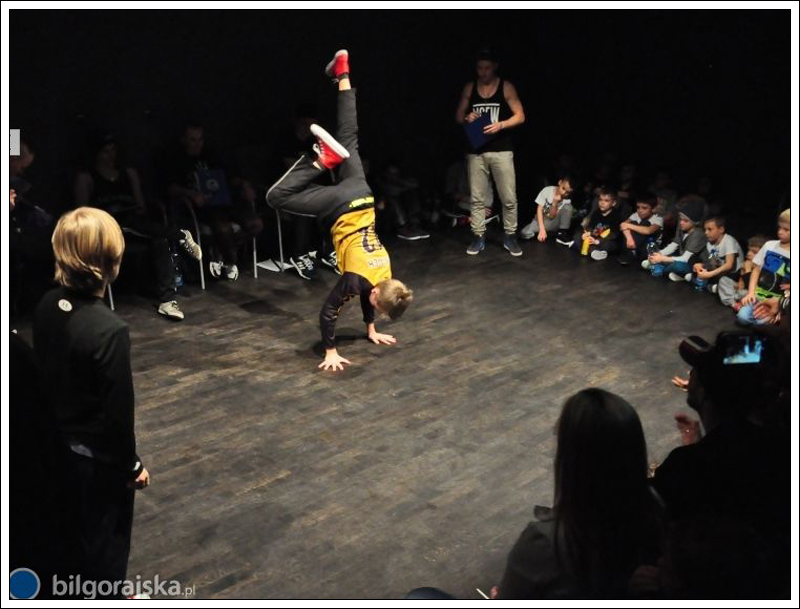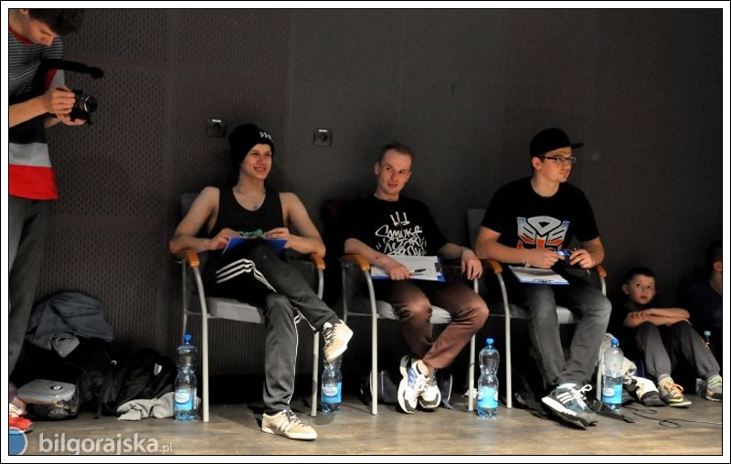 Biłgo-Rajskie Battle KID'S 2015 - BEZ NAZWY DAJĄ RADĘ!28 Lutego 2015r.28 lutego przed tancerzami Bboyingu pojawiła się nie lada atrakcja. Mogli wziąć udział w Biłgorajskiej Bitwie Tanecznej do lat 15. Mogłem niestety zabrać ze sobą tylko 3 osoby. Po licznych walkach została wyłoniona reprezentacja ekipy BEZ NAZWY: Adi, Sprężyna, Wojtas. Droga była długa, ale wesoła. Na miejscu mali tancerze wzięli udział w warsztatach z sędziami. Bestroskee rozgrzał dzieciaki i zwracał uwagę na groove. Pokazał także jak rozbudowywać kreatywność na bazie zwykłego sixstepa. Żurek standardowo zajął się Powerami: back spin, rodeo i ich rozbudowa. Ostatni warsztat poprowadził Emez – oparł się o timing i swoje wspaniałe podejście. Na kilka chwil przeniósł dzieciaki do świata muzyki. Wspaniały człowiek. Same zawody odbywały się w drugiej sali. Bardzo przyjemni ludzie i naprawdę przyjazny klimat powinien być mottem tej imprezy. Dla łobuziaków z Bez Nazwy były to pierwsze zwody tak daleko od domu. Pierwszy raz mogli skonfrontować swoje umiejętności z rówieśnikami z innych województw. Sam się zastanawiałem jak wypadnie Milejowski flavour na tle młodych B-Boys z innych często większych miast. Nie zawiodłem się i sprawdziły się moje podejrzenia. Milejów ma swój własny smak, swoją własną muzykalność ma swoją własna jakość. Nasi mali B-Boye naprawę wyróżniali się z tłumu było widać, ze pochodzą z innego świata, to dobrze taki jest cel moich treningów. Koniec końców B-Boy Wojtas doszedł do szesnastki. B-Boy Adi odpadł w ćwierćfinałowej bitwie natomiast B-Boy Sprężyna wywalczył 4 miejsce! Jak widać oryginalność to nie wszystko, chłopcy mają jeszcze pewne braki, ale w momencie pisania tekstu już nad nimi pracują. Za rok uderzą ze zdwojoną siłą! Ps. Nie mogę pominąć faktu, że sprężyna odwalił tam numer imprezy.