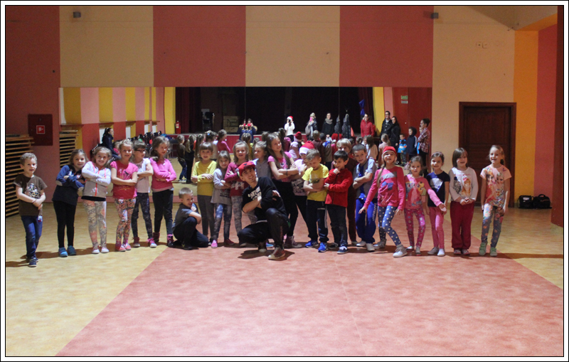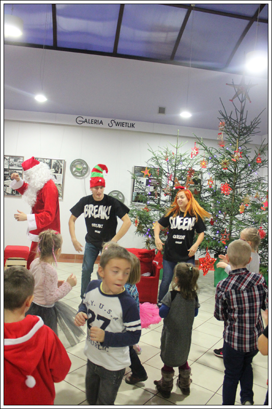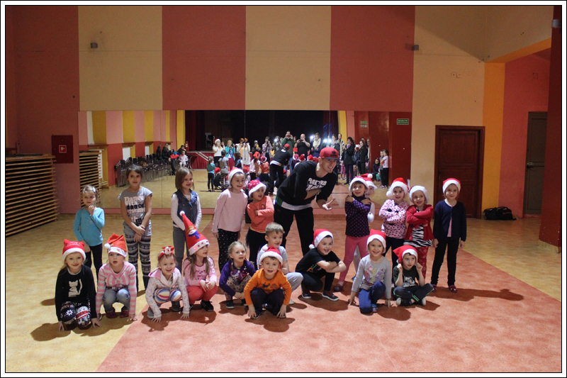 Mikołaj, Rudolf i Elf6 Grudnia 2015r.W tym roku do Gminnego Ośrodka Kultury w Milejowie luzacki Mikołaj przybył w butach Nike, co zobowiązywało, by jego obstawa była równie Hip Hopowa, dzięki czemu dorobił się najbardziej rudego renifera Rudolfa (Boogie) oraz człowieka z najbardziej pasującymi uszami na stanowisko elfa - czyli mnie.. Razem z Mikołajem mieliśmy za zadanie przeprowadzić mały warsztat taneczny. Szybka akcja choreograficzna przygotowana przez Boogie i dzieciaki z uśmiechem mogły wybierać prezenty z worka grubego Mikołaja. Kolejny dzień, w którym nasz ruch mógł sprawić dzieciakom radość. Nie ma lepszych dni… nie ma.