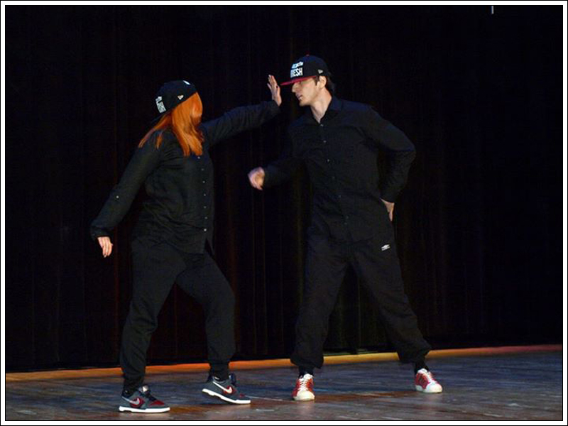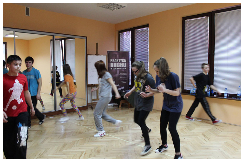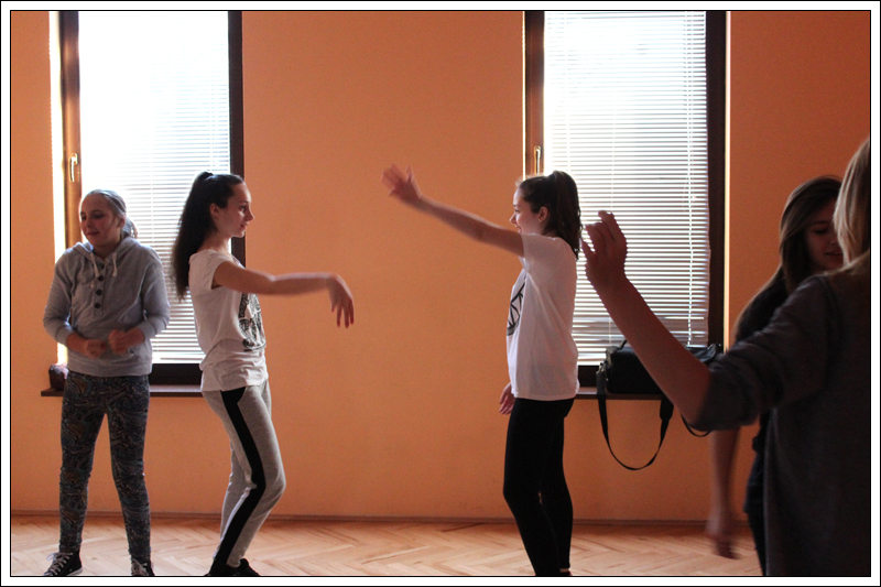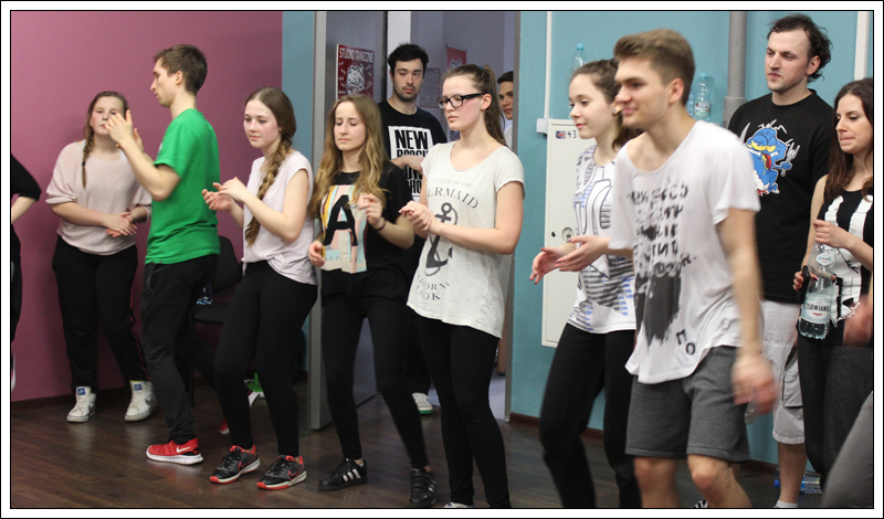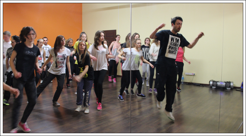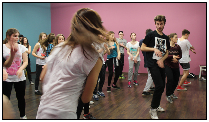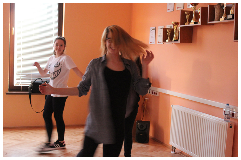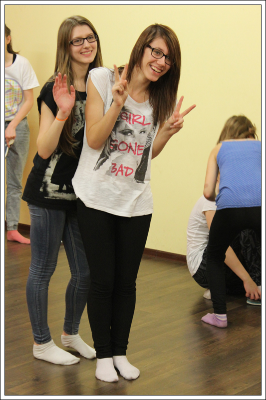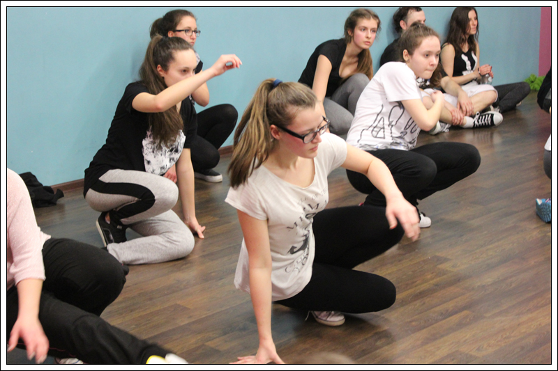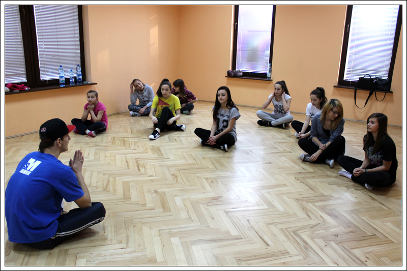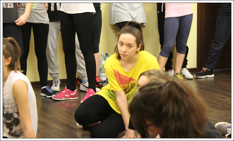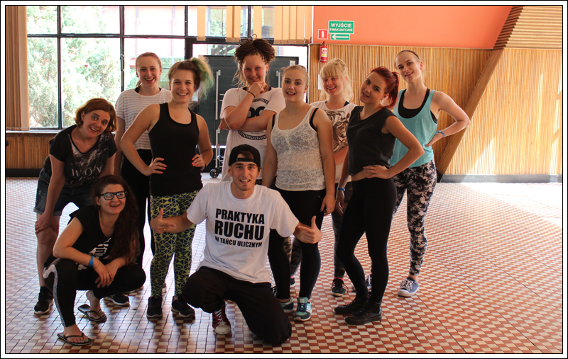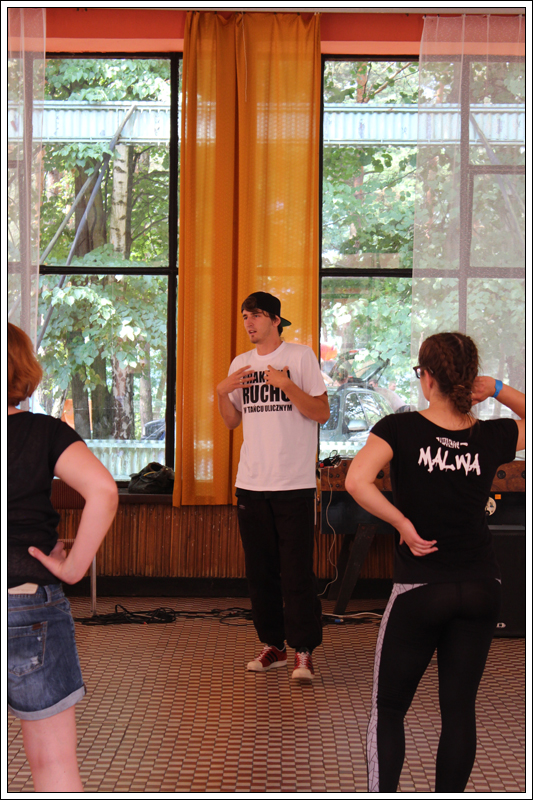 POPPING - PITZO Poppingowy warsztat naprawdę bardzo mi się spodobał. Na samym początku Pitzo opowiedział nam skąd ten styl pochodzi i wyjaśnił na czym polega najprostszy „pop”. Potem zaczęliśmy robić układ składający się z podstawowych, poppingowych ruchów. Musieliśmy pamiętać o groovie, o tym aby każdy „pop” był jak najlepiej zaakcentowany w muzyce oraz aby mocno zarysowywać nasze pozycje. Pitzo wszystko bardzo dobrze i powoli tłumaczył, dzięki czemu nie miałam trudności z załapaniem kolejnych kroków. Sam układ był naprawdę bardzo urozmaicony, poznaliśmy najprostsze ruchy takie jak: „two step” czy „cris cross” nie zabrakło także trochę „robota”. Pitzo zawsze upewniał się, czy wszystko rozumiemy, nie śpieszył się z kolejnymi krokami i okazał się naprawdę dobrym nauczycielem. Cały warsztat oceniam bardzo pozytywnie i cieszę się, że mogłam w nim uczestniczyć, ponieważ popping to styl, który zawsze mi się podobał i chciałam go lepiej poznać. Opowiadała - WERA - TANIEC WSPÓLECZESNY Warsztaty, na których ostatnio miałam okazję uczestniczyć z tańca współczesnego w Lublinie były jednych z najlepszych warsztatów na jakich byłam. Zajęcia trwały godzinę, a mimo to wiele z nich wyniosłam. Atmosfera jaka przywitała mnie na wejściu była niesamowita. Nigdy nie czułam się w tańcu wolna jak w ciągu tej jednej godziny. Nie ma co się dziwić, instruktor prowadzący te warsztaty był z pewnością tancerzem z dłuższym stażem. Przebojowy, energiczny i optymistyczny człowiek. Były to jedyne warsztaty z tańca współczesnego na jakich byłam mogę jednak powiedzieć, że jestem pod wrażeniem, a miałam przyjemność zobaczyć tylko podstawy. Bardzo zaciekawił mnie ten taniec i bardzo bym chciała pójść w tym kierunku. Swoboda i uczucie lekkości to jest to co lubię. W skrócie mówiąc warsztaty oceniam pozytywnie. Mam nadzieję na to ,że kiedyś ponownie będę mogła uczestniczyć w takich zajęciach. Słowa : ,,I go crazy 'cause here is where I want to be” w pełni opisują moje wrażenia po spotkaniu z tańcem współczesnym. Opowiadała - UrviS - VOGUE - MADLEN ARMY Początkowo słowo „Vogue” kojarzyło mi się jedynie z popularnym magazynem. Dzięki warsztatom z Madlen Army poznałam zupełnie dla mnie nowy, interesujący taniec. Vogue jest inspirowany nie tylko modelingiem, ale także tańcem współczesnym, jazz’em, a nawet baletem i elementami gimnastycznymi. Na początku warsztatu ćwiczyłyśmy, bardzo ważne w tym stylu, ruchy dłoni i bioder. Potem poznałyśmy parę ruchów (m.in. Catwalk), z których ułożyłyśmy krótką choreografię. Dowiedziałyśmy się na jakie elementy dzieli się voguing (np. Old way, New way, Vogue Femme), jakie są najważniejsze różnice pomiędzy waackingiem a voguingiem (np. kąty proste, ruchy klatki