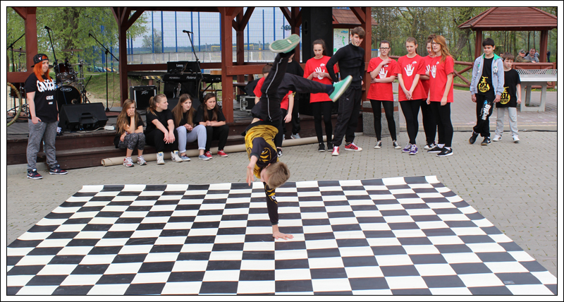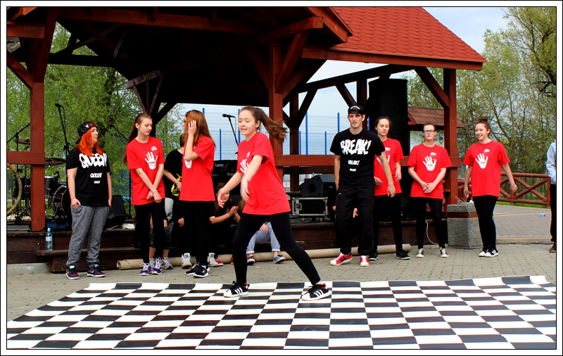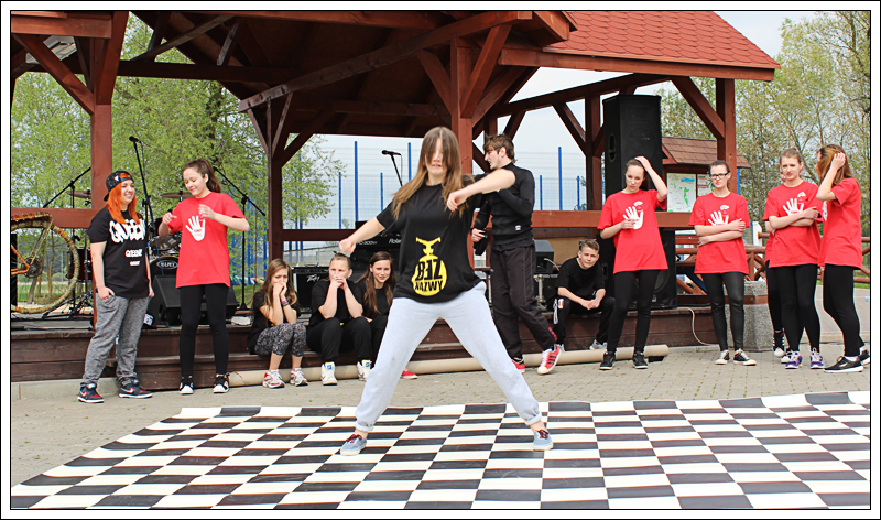 Jaszczów znowu na Freestylu!1 Maja 2015r.Zostaliśmy poproszeni o występ z okazji otwarcia bazy rowerowej w Jaszczowie. Jak się można domyśleć stawiliśmy się całą bandą. Pogoda była zmienna tak jak zmienna była energia, podekscytowanie przeplatało się ze strachem. Może to dla tego, że dawno nie robiliśmy pokazu bez przygotowania, freestylowe wyjścia zawsze wiążą się z ruletką może wyjdzie lepiej a może gorzej, jaki kawałek się trafi i w jaki moment wejdę. Te wszystkie pytania zostają wyjaśnione podczas całej akcji. Wtedy tak naprawdę widać, kto pracował a kto sobie odpuszczał przez ostatnie dni. Śmiało mogę powiedzieć, że ten pokaz był jednym z najlepszych a zarazem najbardziej spontanicznych, jakie kiedykolwiek daliśmy. Na pierwszy rzut oka widać, jaki postęp zrobili Milejowscy tancerze. Oby więcej takich występów i oby więcej takich chwil.