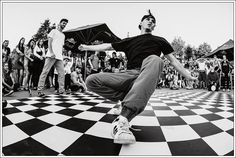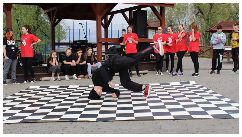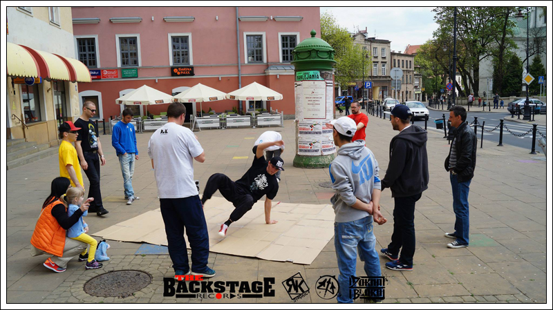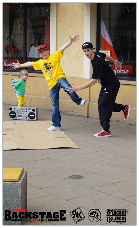 Bitwa o schody - Bez Nazwy dali niezłe Show!6 czerwca 2015r. o godzinie 19:00Zeszłego roku niestety nie dało rady wystartować w bitwie o schody, która swoją drogą wtedy nie działa się na schodach. W tym roku nie mogliśmy przepuścić takiej okazji. Razem z Adim, Sprężyną i Bartkiem z BEZ NAZWY podjęliśmy rękawice. W tym roku poziom był naprawdę bardzo wysoki, najzabawniejsze, że moje dzieciaki były tam najmłodszymi ze startujących;). Niestety nie udało nam się wspiąć wysoko. Tylko Adi zdołał wyjść z eliminacji pokonując o wiele starszego od siebie B-Boya. Ogromne brawa i propsy w stronę małego milejowskiego tancerza. To naprawdę miłe doświadczenie, być tam i wspierać swoją osobą tę Lubelską kulturę, w której każdorazowy przejaw B-Boyingu jest na wymarciu. Oby to się nadal rozwijało tak prężnie!