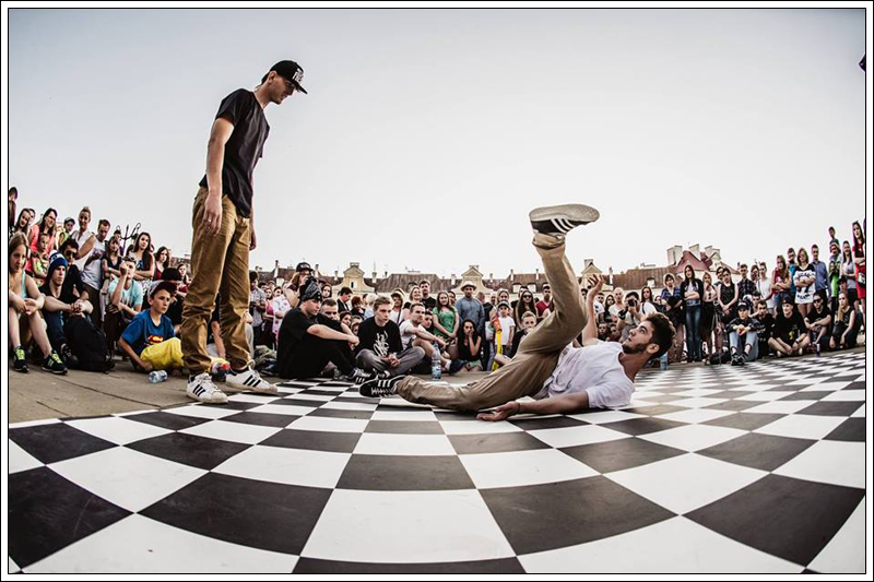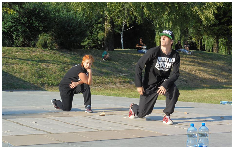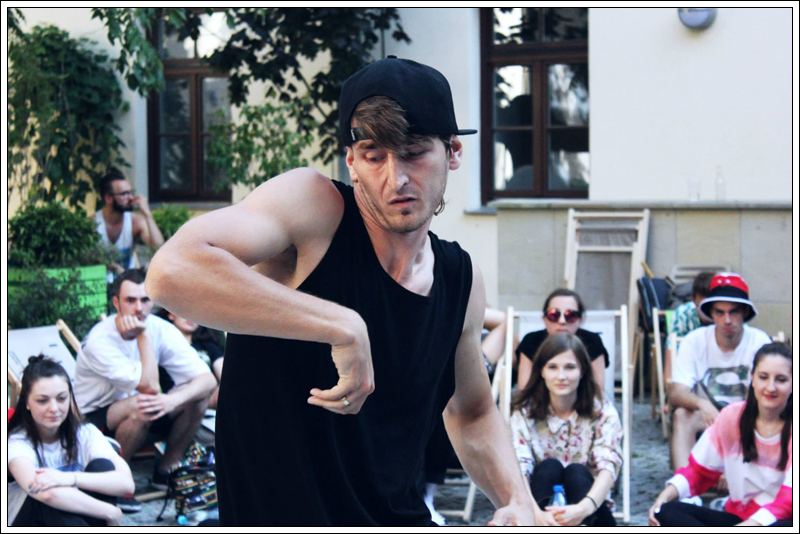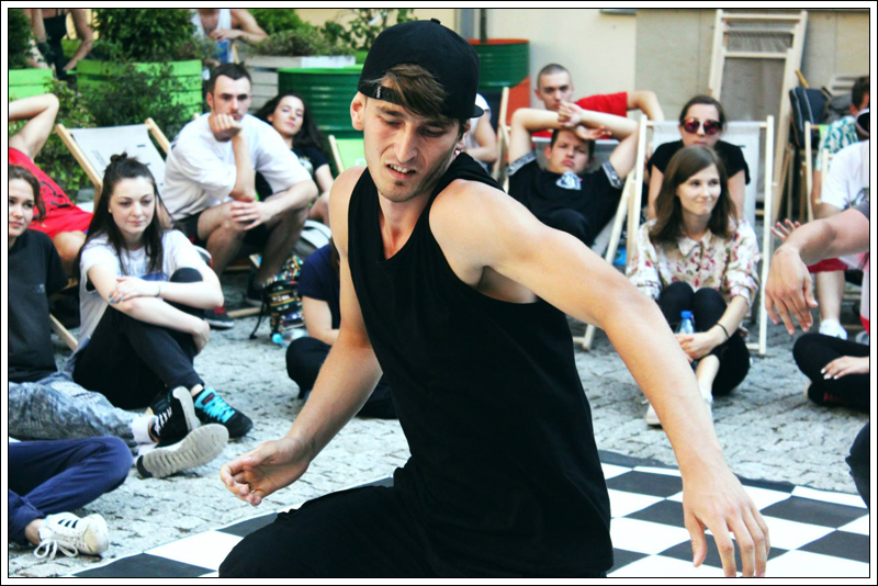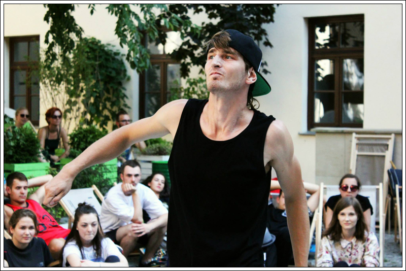 Kiedy człowiek nie ma co robić to ubiera się, wstaje i wychodzi. Przynajmniej ja tak zrobiłem i dzięki temu znalazłem się w samym serduchu Lublina, gdzie Lubelska Szkoła Tańca NBDS organizowała na wirydarzu Centrum Kultury „Letni Konkurs Tańca”. Pojechałem tam sam, ale koniec końców wylądowaliśmy tam razem z Boogie i Werą. Na miejscu sami swoi, a ja biedny nie mam pary, by wystartować w duetach Hip Hop. Po małych roszadach pomiędzy Werą a Paulą wystartowałem wreszcie z kompletnie nieznajomym ziomkiem, który przyjechał z Ukrainy. W kategorii Hip Hop duety wyszliśmy z eliminacji i przegraliśmy bitwę z Megi i Kaśku. W Bboyingu nie udało mi się dostać bileciku, który upoważniałby na wejście do ćwierćfinałów. Natomiast Locking, na który bardzo liczyłem przedłużył się do tego stopnia, że nie mogłem już dłużej czekać (cóż, mały bobas czekał na mnie w domu). Podsumowując nic nie ugrałem, ale świetnie się bawiłem. Często tak już ze mną bywa, spędziliśmy miłe popołudnie w bardzo przyjemnym miejscu wśród naprawdę przyjemnych ludzi.