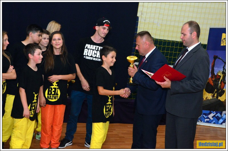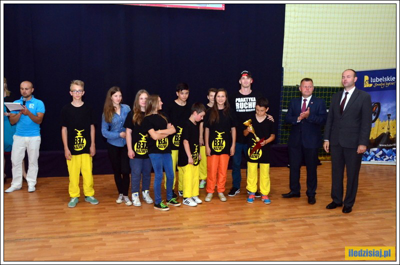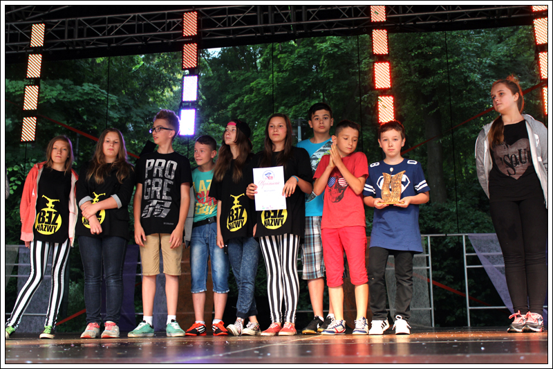 Pierwszy raz w nowym miejscu i pierwsi na podium!15 czerwca 2015r.Po udanych wariacjach w Łęcznej postanowiliśmy wystartować również w miejscowości Ulan Majorat, gdzie miał miejsce VIII Wojewódzki Konkurs Zespołów Tanecznych o Puchar Marszałka Województwa Lubelskiego. Tym razem startowali tam wyłącznie tancerze z ekipy BEZ NAZWY. Pogoda nie dopisała, ale zapał młodych wojowników wystarczająco podgrzewał atmosferę. Podróż odbyła się bezproblemowo, ale jak to zazwyczaj bywa było zbyt pięknie, by mogło tak pozostać. Podczas rozgrzewki Adiemu odnowiła się kontuzja kostki, na tyle poważnie, że nie obyło się bez maści i bandaży. Występ BEZ NAZWY stanął pod znakiem zapytania… na szczęście Adek twardym zawodnikiem jest i powiedział, że da radę nawet bez nogi. Występ się udał. Adi dał radę. Wszyscy dali z siebie wszystko. Długie oczekiwanie na werdykt i jest! Ponownie się udało! BEZ NAZWY zajęli I miejsce w kategorii Juniorzy - Taniec Nowoczesny. Kolejne doświadczenia, kolejne nagrody. Mam tylko nadzieję, że to zachęci ich do jeszcze intensywniejszej pracy.