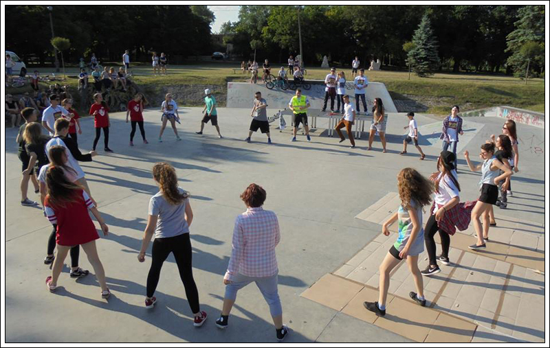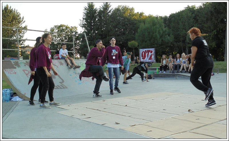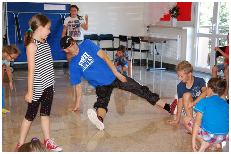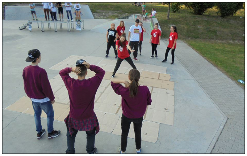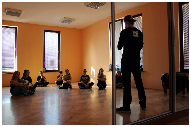 Beztroski wakacyjny warsztat!5 sierpnia 2015r.Od dawna planowany moment nareszcie doszedł do skutku. Mój dobry znajomy, artysta, lekarz, b-boy i „człowiek uśmiech” znalazł chwilę, by odwiedzić nasz mały Milejów. Mowa oczywiście o Oskarze znanym w kręgach tanecznych, jaki B-Boy Bestroskee. Oski przybył do nas punktualnie, niestety nie dopisała milejowska frekwencja, ale z drugiej strony może to i lepiej, bo mieliśmy mnóstwo miejsca na sali. Oskar swoim warsztatem chciał przebrnąć przez każdy element B-Boyingowego świata. Zaczęliśmy od Toprocków i rozbudowywaliśmy ruchy takie jak skate, shuffle itp. Następnie otrzymaliśmy świetny patent na rozbudowę dropów opierający się na czterech różnych drogach: 1. Fundamentalne ruchy. 2. Podskoki. 3. Slajdy. 4. Obroty. Kolejnym elementem był Footwork. Rozbudowywaliśmy kreatywność za pomocą wyciskania maksimum ze zwykłego 6stepa. Poznaliśmy także kilka ciekawych wariacji 3 stepa, shuffle, baby love czy nawet zwykłego CC. Oskar nie ominął również Back Rocków. Przebrnęliśmy przez ich podstawy a także średnio zaawansowane elementy i doszliśmy do freezów i ostatecznie zatrzymaliśmy się na Power Movesach. Warsztat był naprawdę bardzo ciekawy i wiele z niego wynieśliśmy. Dodając do tego osobowość prowadzącego to już naprawdę dzień spędzony nie lada przyjemnie. Dziękuję każdemu, kto tego dnia ruszył dupsko z domu i dał radę z warsztatem, który wcale nie należał do najłatwiejszych.