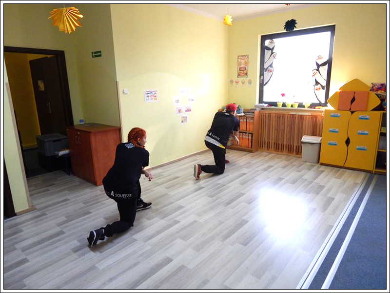 Obóz stał się początkiem owocnej współpracy pomiędzy Squeeze i Akademią Tańca, dzięki czemu od września tego roku prowadzę tam zajęcia zarówno dla zupełnie nowej, jak i starej dobrej załogi. Moim zadaniem jest wprowadzić nieco Bboyingu do Funkowo Hip Hopowej załogi a także przygotować ich ciała pod kątem fizycznym do dalszej znacznie cięższej pracy. Nie ma sprawy, działamy.