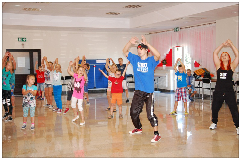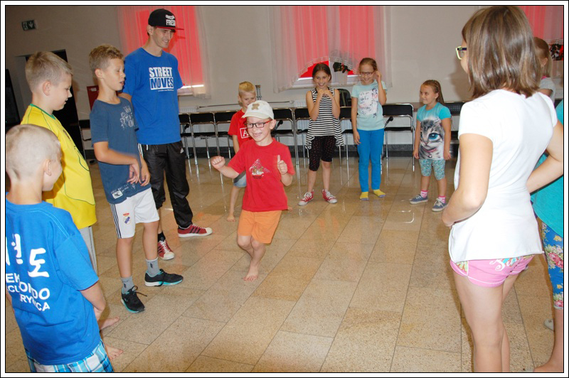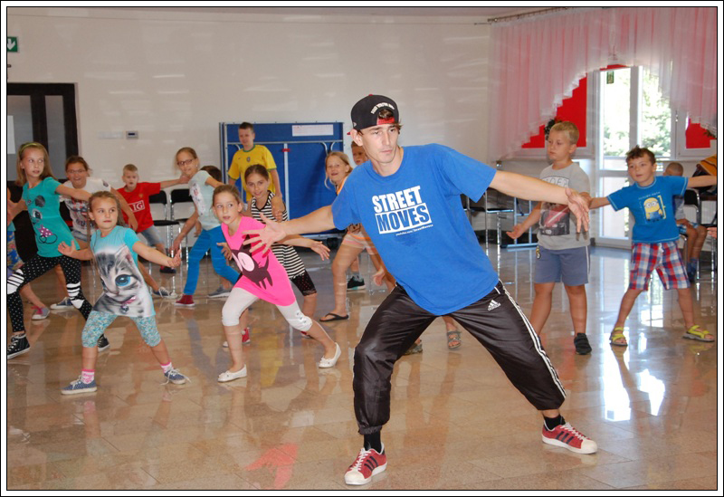 Rytm Chełm - OBÓZ17 - 27 Sierpnia 2015r.Z poprzedniego obozu przeteleportowałem się prosto do Staszowa w piękne tereny do ośrodka położonego dosłownie kilkanaście metrów od Jeziora. Obozy Rytmowe wiążą się zawsze z maksymalnym wysiłkiem fizycznym i ciężką pracą. To dobrze, ja lubię takie obozy, takie powinny być obozy taneczne. Każdego dnia 6 Godzin tańca + poranny rozruch i wieczorne praktyki dla chętnych daje nam łącznie 60/70 godzin tańca przez 10 dni obozu. Dawka powalająca. Zakwasy, bóle mięśni i masa potu wylanego na parkiet. To wszystko mija już po pierwszych 4 dniach. W tym roku obóz był wyjątkowo owocny. Pozwolił zrealizować naprawdę sporo materiału i przede wszystkim nauczył samodzielności i odpowiedzialności moich podopiecznych. Każdy obóz w Rytmie jest inny, w innym miejscu, z inną energią, z innym składem. Teraz pozostaje działać na zajęciach stacjonarnych.