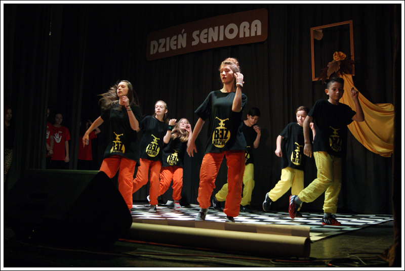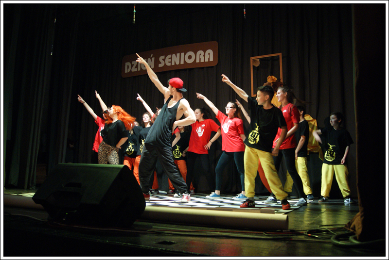 Pokaz „Dzień Seniora”22. Listopada 2015r.Chciałbym bardzo mocno zwrócić uwagę, że starsi ludzie nie zawsze muszą być, mało wyrozumiali, okropi i jak to mawia młodzież „niczego nie czający”. Milejowscy Seniorzy to naprawdę wyluzowana paczka ludzi. Z okazji Dnia Seniora Forum Kobiet zorganizowało popołudnie dla seniorów. Zaproszono nas, jako niespodziankę. Zawsze mam mieszane uczucia w takich przypadkach, ponieważ wiem, że seniorzy bardzo często nie rozumieją fenomenu tarzania się po podłodze. Postanowiliśmy jednak wyjść naprzeciw i nieco dostosować się do okoliczności. Pomysł ze spontanicznym odtańczeniem twista był trafiony w dziesiątkę. Zostaliśmy odebrani bardzo pozytywnie. Do tego stopnia, że zbieraliśmy propsy od staruszek w kościele po niedzielnej mszy. Hip Hop jest dla każdego, trzeba tylko odpowiednio go podać.