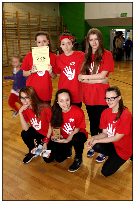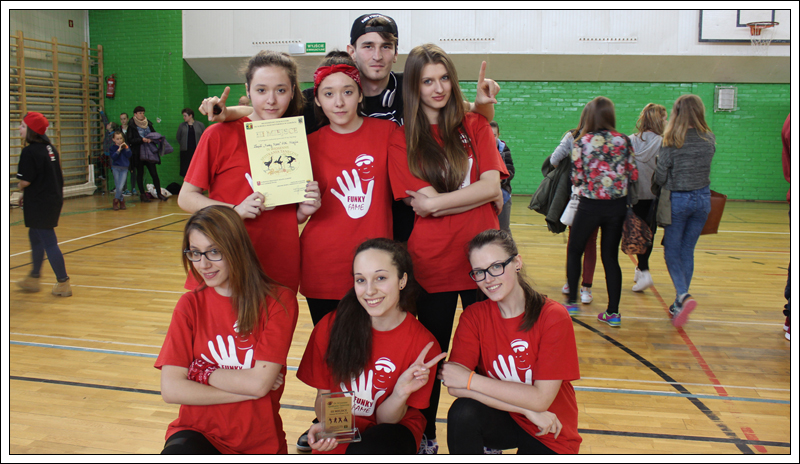 FUNKY FAME! BEZ NAZWY! Czyli triumfujemy w Łęcznej.22 Maja 2015r.Zeszłoroczne zawody przyniosły naprawdę fantastyczne i nieoczekiwane owoce. Znikąd wskoczyliśmy na sam szczyt. W tym roku było o tyle trudniej, że najlepsi, którzy bronią pierwszego miejsca zawsze mają najgorzej, ponieważ każdy chce ich dogonić. Muszą pozostać skupieni na ciężkiej pracy i nie mogą odpuścić, jeśli chcą utrzymać poziom. Trenowaliśmy ciężko, nawet bardzo ciężko. Mimo wszystko obawiałem się, że to nie wystarczy tym bardziej, że Bez Nazwy miało sporo problemów w ostatnich tygodniach przed startem. Pomimo moich obaw obydwie ekipy spisały się na medal. Bez Nazwy obroniło swoje zeszłoroczne 1 miejsce w kategorii formacje - freestyle - juniorzy. Natomiast Funky Fame utrzymało drugie podium w kategorii Formacje - Hip Hop - Seniorzy. Jestem naprawdę dumny z tych mniejszych i większych tanecznych wariatów. Jeśli będą pracować tak jak należy, to ich zwycięstwa nie poprzestaną na Łęcznej. Już niebawem kolejne zawody i kolejne zmagania.