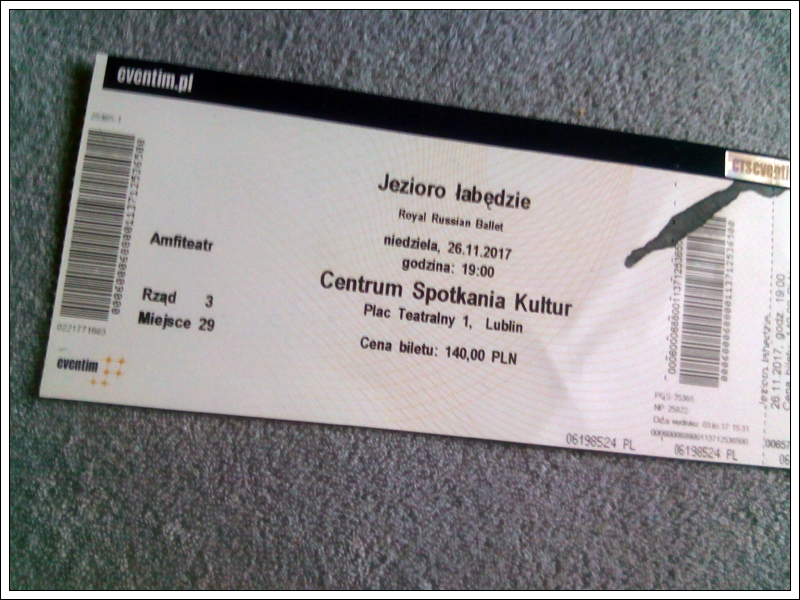 "Jezioro łabędzie" - Royal Russian Ballet w Lublinie26 listopada 2017r.Odkąd pamiętam, zawsze chciałam zobaczyć balet na żywo. Gdy nadarzyła się okazja by zobaczyć "Jezioro łabędzie" w wykonaniu Royal Russian Ballet to bardzo chętnie z tego skorzystałam. Spektakl odbył się 26 listopada 2017 r w Centrum Spotkania Kultur w Lublinie.