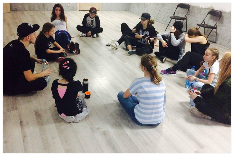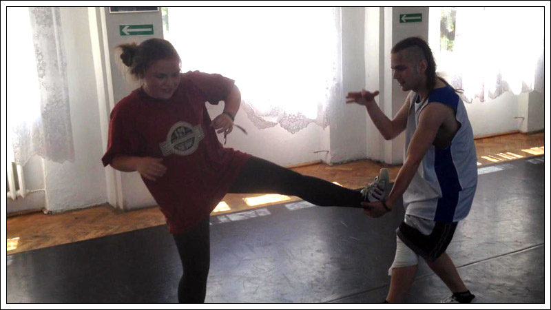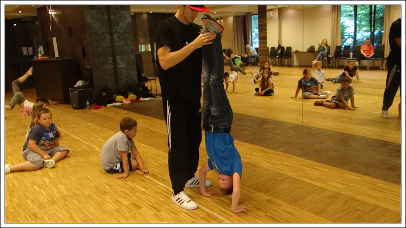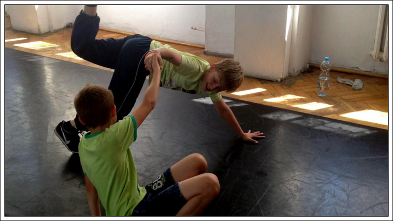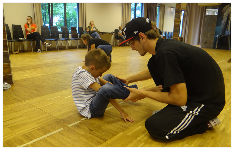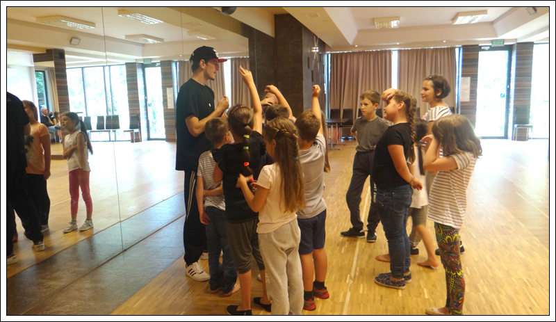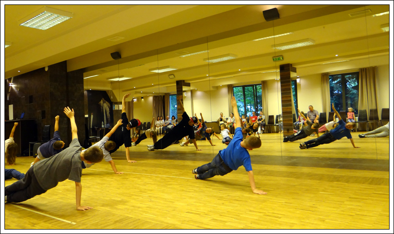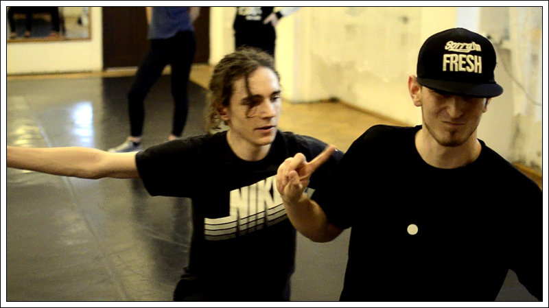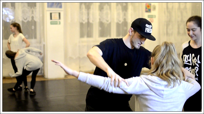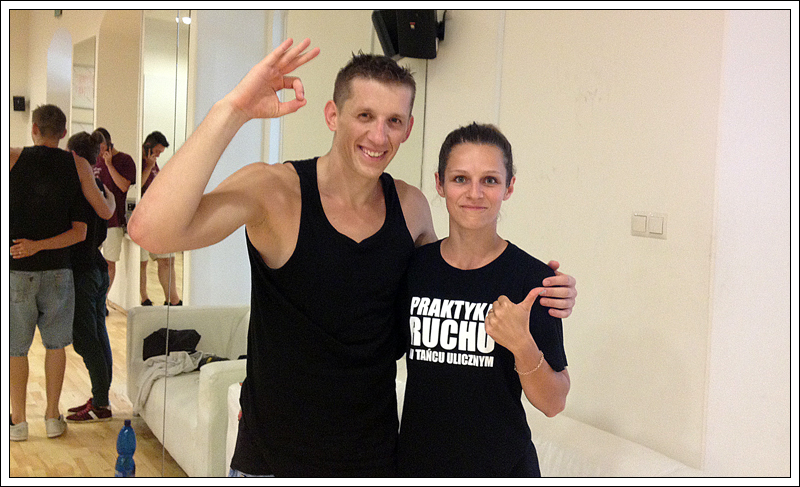 tańczonego stylu – ach mój bboyingu! Drugie ćwiczenie było w parach i polegało na tańczeniu i zakończeniu tak mocnym akcentem, by przeciwnik zorientował się,