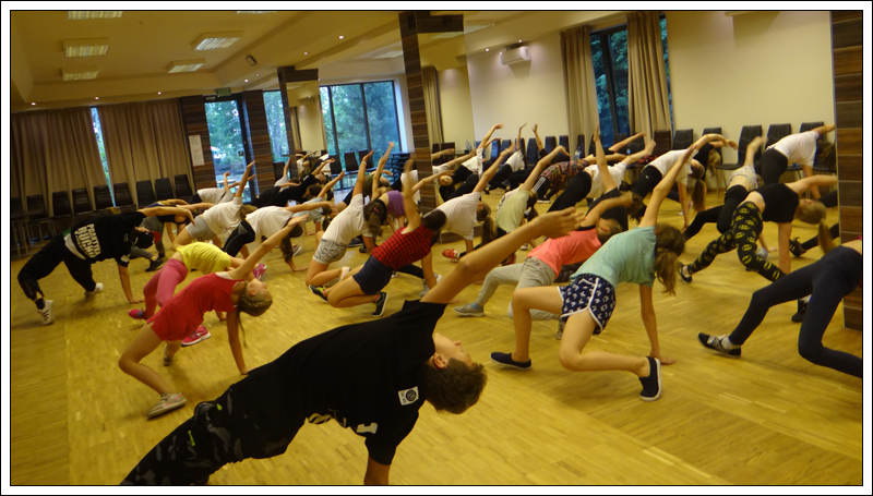dzień poprzedni a na starszej mogłem się już próbować w tym odnaleźć sercem. Zajęcia z tańca współczesnego opisałbym w proporcjach 40% rozciągania i 60%