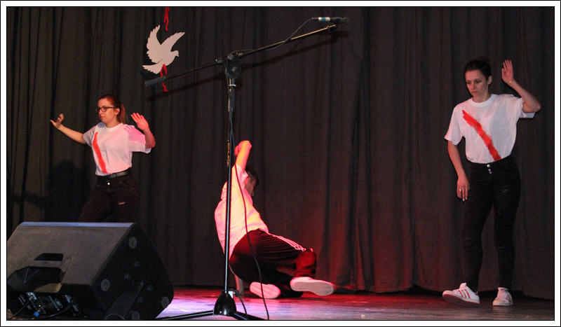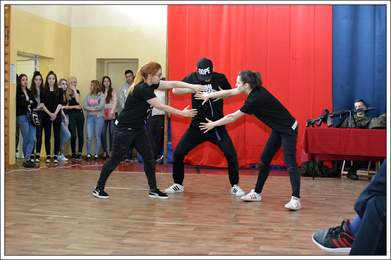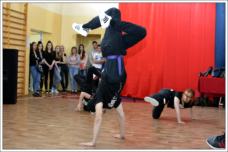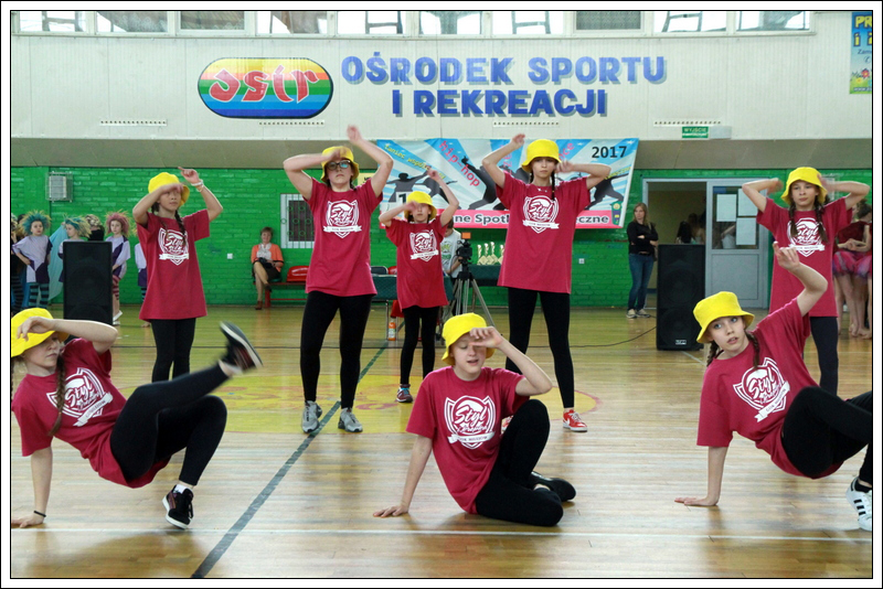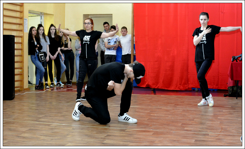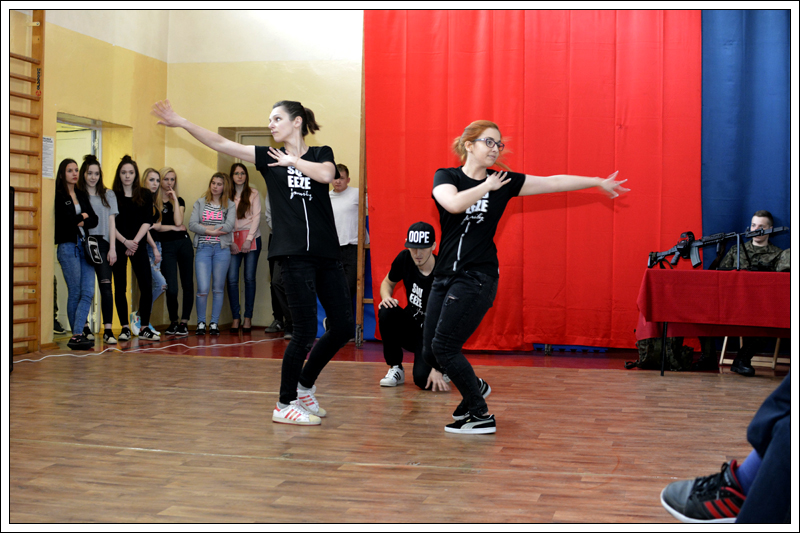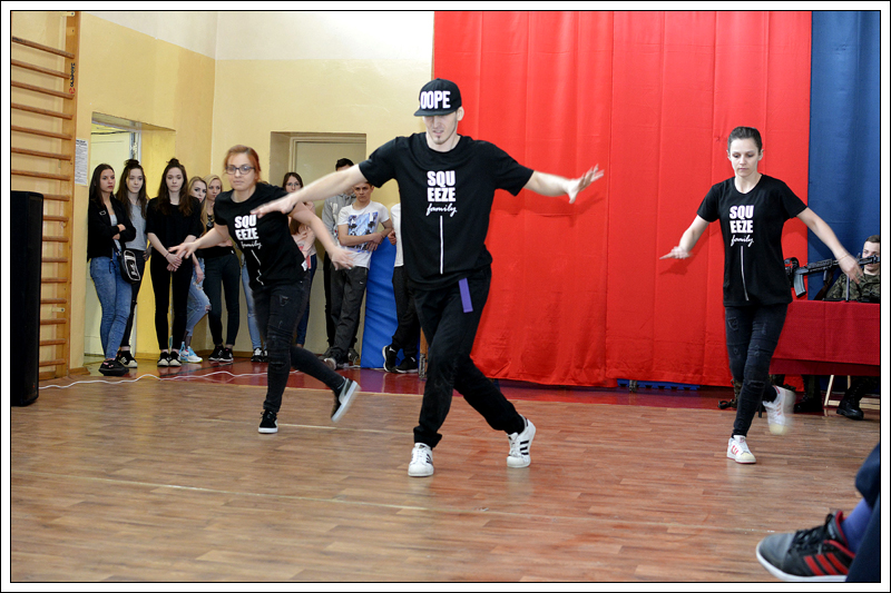 HIP HOP PATRIOTYCZNIE30 kwietnia 2017r.Czasem pojawia się potrzeba prezentacji całkowicie odmienna od tego, co robimy na co dzień. Wtedy opcji mamy kilka… nie brać na siebie tego wyzwania lub podjąć się i dostosować niczym woda (jak mawiał Bruce Lee) do sytuacji. Tutaj wyzwanie było podwójnie trudne, ponieważ tematyka imprezy była silnie związana ze Świętem Niepodległości. Był to finał projektu Polak Mały, który od dłuższego czasu przygotowywała Pani Iwona Wit wraz z uczniami Szkoły Podstawowej w Milejowie. Hip Hop i polski patriotyzm obecnie wydają się mieć sporo wspólnego. Raperzy śpiewają o ojczyźnie a połowa polskiej młodzieży nosi patriotyczne emblematy na ubraniach. Pomimo tego, wiem że nowojorskie funkowo breakingowe utwory, do których mamy choreografię nie bardzo wpisują się w polskość. Taka tematyka bywa delikatna, nie można nikogo urazić i pomimo faktu, iż święto ma radosną formę, to trzeba je potraktować z szacunkiem. Na szczęście wybrnęliśmy z tego z podniesioną głową a może raczej z podniesioną flagą. Odrobina poprawek w muzyce, kilka zmian w choreografiach i daliśmy dwa całkiem dobre przedstawiania. Ogromne dzięki dla dziewcząt z Funky Fame za to, że stawiły się na wezwanie i dumnie reprezentowały Milejowski Taniec. Podziękowałbym również dziewczynom z mojej ekipy, ale nie zrobię tego, bo SQUEEZE to przecież SQUEEZE - profesjonalnie i z klasą.
