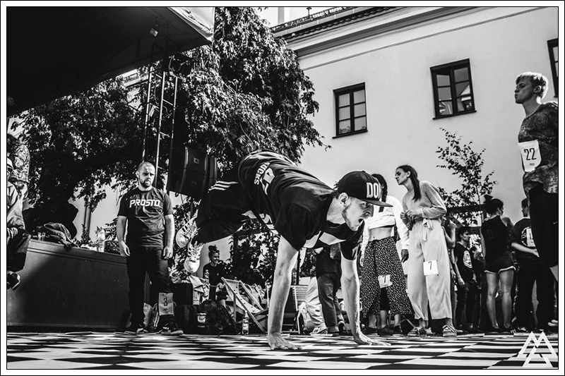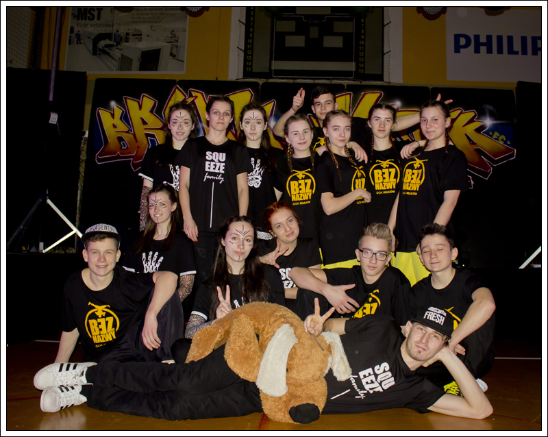 BREAKMANIA X, czyli dwa dni maksymalnej zajawki!17-18 marca 2017r.Ten rok naprawdę jest wyjątkowy, a to dopiero marzec. W marcu pojawiła się dla nas niesamowita okazja. Pojechaliśmy nad nasze piękne polskie mazurskie tereny - do Kętrzyna, na jubileuszową edycję międzynarodowej imprezy tanecznej "Breakmania X". Ta impreza to dwa dni pełne tańca. Wyjechaliśmy w piątek o godzinie 23:00, droga minęła wyjątkowo szybko. Na miejscu byliśmy o 8 rano. Sporo ludzi już tam spało, odpoczywając po warsztatach z B-Boyem Kuzya, który jest jednym z sędziów tegorocznych zawodów. Znaleźliśmy sobie przyjemne lokum do spania, poznaliśmy teren i zjedliśmy śniadanie. Pierwszy dzień był pod sztandarem Breakingu. Wszystko zaczęło się z lekkim opóźnieniem. Jako pierwsi stoczyli swoje walki tancerze z BEZ NAZWY. Niestety odpadli w eliminacjach trafiając na bardzo trudnych przeciwników, takich jak Vigor czy Monster, którzy są obecnie czołówką młodzieżowego B-Boyingu w Polsce. Następnie była kategoria B-Girl 1 na 1 do lat 15, w której startowała Wera z FUNKY FAME, niestety zjadł ją trochę stres i nie udało jej się wyjść z eliminacji. Kolejną kategorią były bitwy B-Girls powyżej 16 lat, gdzie startowały dziewczyny ze SQUEEZE - Naniśka i Boogie. Zaprezentowały się bardzo fajnie, ale to również nie wystarczyło, by przejść dalej. W kategorii B-Boys powyżej lat 16 startowałem tylko ja. Zapisywałem się na starszą kategorię ,ale koniec końców wyczytali mnie w tej, to i zawalczyłem w tej. Nie przeszedłem do eliminacji przegrywając z Klimaszewskim, który później wywalczył trzecie miejsce w tej kategorii - przynajmniej takie pocieszenie. Ostatnią kategorią tego dnia, w jakiej braliśmy udział to bitwy 3 vs 3 B-Boying powyżej lat 12. Wystartowaliśmy tam jako dwie ekipy BEZ NAZWY w składzie Sąsiad, Fifi i Adi oraz SQUEEZE w składzie Jamnik, Naniśka i Boogie. Niestety nie udało się przejść do drugiej rundy. Można powiedzieć, że polegliśmy tego dnia na całej linii i tak też było. Pomijając porażki, było też wiele pozytywnych akcentów tego dnia. Złapaliśmy mnóstwo zajawki, posłuchaliśmy fantastycznej muzy, stoczyliśmy pewne bitwy poza zawodami, siadło wiele nowych ruchów i spędziliśmy przyjemnie i wspólnie czas - to najważniejsze elementy zarówno Hip Hopu jak i tańca. Skoro już jesteśmy przy Hip Hopie, to drugi dzień był poświecony właśnie Hip Hopowym tańcom. Dla nas ten dzień był ważniejszy, ponieważ to właśnie na ten dzień przygotowywaliśmy formacje. Turniej zaczął się właśnie od kategorii formacje. Pierwsi wystartowali "BEZ NAZWY". Niestety ich występ nie należał do najlepszych. Sama choreografia była edytowana na potrzeby skrócenia czasu, dodatkowo jedna jej cześć była dobierana z tamtego roku. Przyniosło to efekt jaki przyniosło, robili co mogli, ale pewnych rzeczy się nie przeskoczy. Kolejnym zespołem, który się zaprezentował było Funky Fame - tutaj również ograniczenie czasowe nie pozwoliło nam pokazać całej idei choreografii, ale pomijając to, dziewczynom poszło wyjątkowo dobrze. Jako ostatni wystartowaliśmy my, czyli SQUEEZE z naszą choreografią opartą o soundtrack z serialu "The Get Down". Tańczyło nam się świetnie, pomimo, że był lekki stres. Niestety nasze Choreografie okazały się nie wystarczające. Wyciągniemy wnioski i poprawimy, ewentualnie - zatańczymy lepiej. Później mieliśmy sporo oczekiwania, oglądania i emocji, bowiem trwała kategoria Hio Hop solo a w tej startowaliśmy dopiero w najstarszej wiekowo kategorii. Zostaliśmy rozbici na 3 oddzielne koła. W jednym walczyła Wera z FUNKY FAME, w drugim Boogie ze SQUEEZE a w trzecim Ja. Z naszej trójki tylko mi udało się przejść do drugiego etapu eliminacji, gdzie przegrałem z dziewczyną, która ostatecznie zajęła 3 miejsce w tej kategorii. To jakaś klątwa porażek z brązowymi medalistami. Na koniec była jeszcze kategoria All Styles, gdzie ponownie wystawiliśmy 2 ekipy. Tym razem z mieszanymi składami SQUEEZE (Fifi, Naniśka, Wera, Boogie) oraz BEZ NAZWY (Adi, Paula i Jamnik). Muszę przyznać, że tutaj bawiliśmy się stanowczo najlepiej, to właśnie tutaj siadły nam najlepsze sety a wyjścia, które zrobił Adi, Kętrzyn nie zapomni chyba nigdy. Mimo wszystko nie wystarczyło to, by przejść dalej. Może dlatego, że podeszliśmy do tego zbyt luźno, ciężko powiedzieć. Najważniejsze, że bawiliśmy się świetnie. W domu byliśmy w poniedziałek nad ranem. Te zawody wiele nas nauczyły, bardzo nas zżyły. Teraz w mojej kwestii jest wyciągniecie wniosków, jakie powinien wyciągnąć instruktor a w kwestii moich podopiecznych jest wyciagnięcie wniosków, jakie powinien wyciągnąć tancerz. Myślę, że każdy z nas ma takie chwile, w których musi na chwilę się zatrzymać, pomyśleć i dopiero pójść dalej. Dla nas to jest właśnie ten moment.