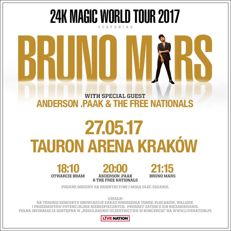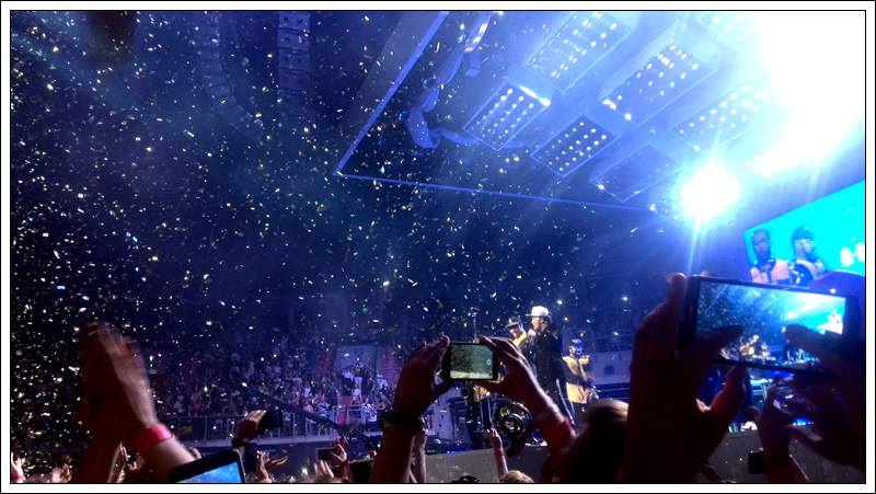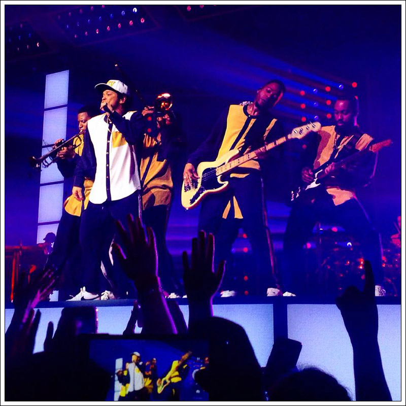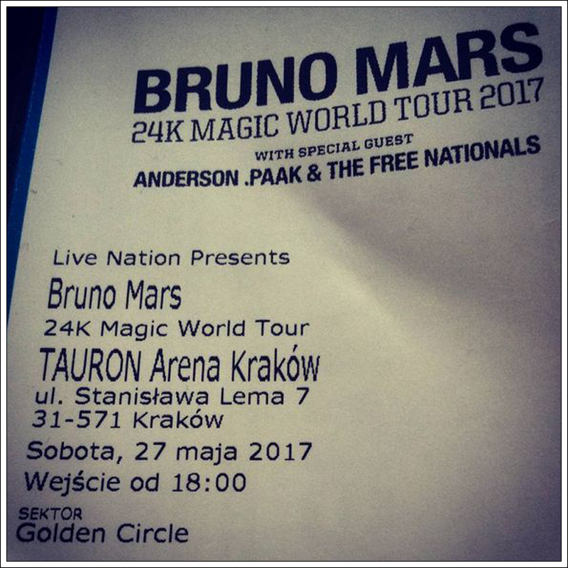 Co do samej osoby Bruno Marsa, to ten człowiek jest dokładnie taki jak go widujemy na teledyskach czy filmikach. Idealna cera i białe zęby… wygląda wręcz jak lalka. Aż ciężko uwierzyć, że jest prawdziwy. Mały człowiek ale z ogromnym talentem. Sprawił, że na trybunach od początku do końca wszyscy ludzie stali i się bawili. Bije od niego niesamowita energia. To sprawiło że uwierzyłam w to, że kocha to co robi i się tym cieszy, a razem z nim cały zespół. Sam koncert zrobił ogromne wrażenie i jest ogromną produkcją przy której musiało pracować mnóstwo osób. Prawie każda piosenka miała inną oprawę sceniczną, wyjeżdżające z dołu podesty, zjeżdżając e z góry dekoracje, ogień, czy złote konfetti… Pierwsza część zawierała głównie piosenki z nowej płyty, druga część to już były starsze znane hity. Wszystko było wykonane na 100% i była to droga przez wszystkie emocje, od radości po wzruszenie.