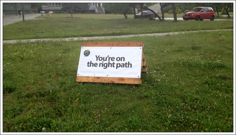 Do MPK mam 15 min, w takich sytuacjach zawsze idę pieszo, traktuję to jako sposób, by poznać miasto. I ku mojemu zdziwieniu po 7 minutach jestem na miejscu, do którego jechałbym pewnie jakieś 3 minuty, ale czekał na autobus 15. Ja rozumiem, że wygodniej, ale cóż to za oszczędność czasu. To mi trochę uświadomiło, czemu w mieście ludzie tak ciągle pędzą. Jeśli w taki sposób przeliczają czas, to się nie dziwię. Gdy na terenie obiektu Akademii Wychowania Fizycznego zauważyłem znajome logo z napisem " You are on the right path", wiedziałem, że jestem blisko i że to już się dzieje!