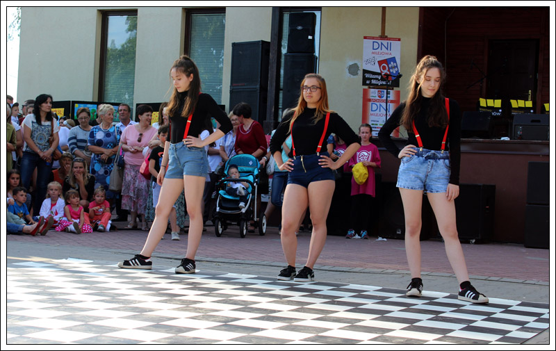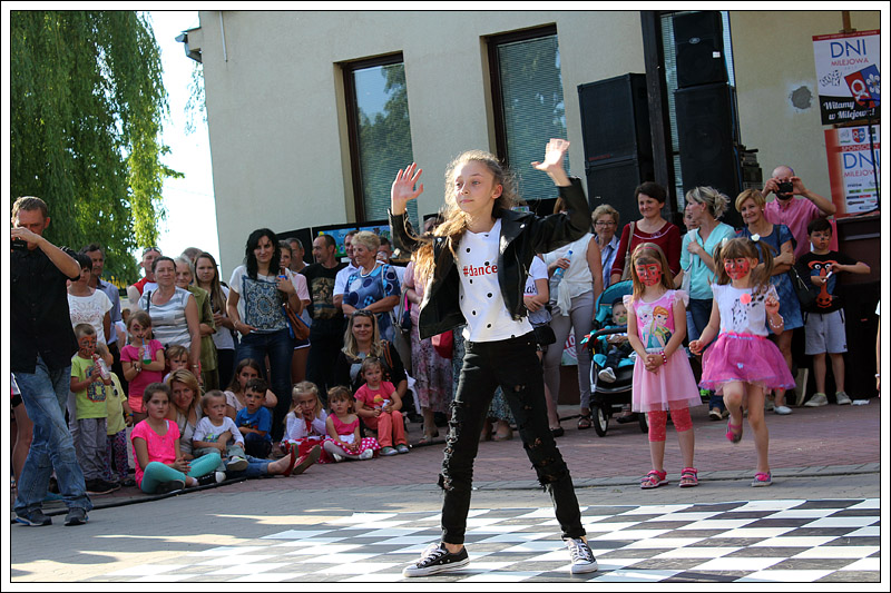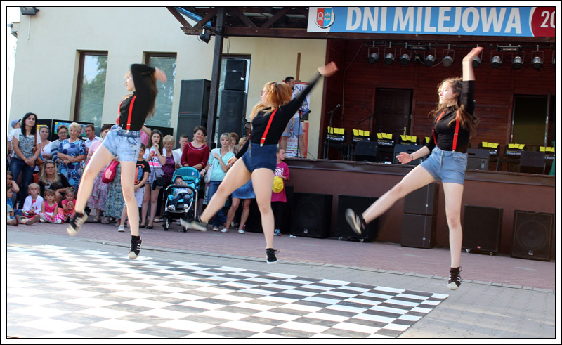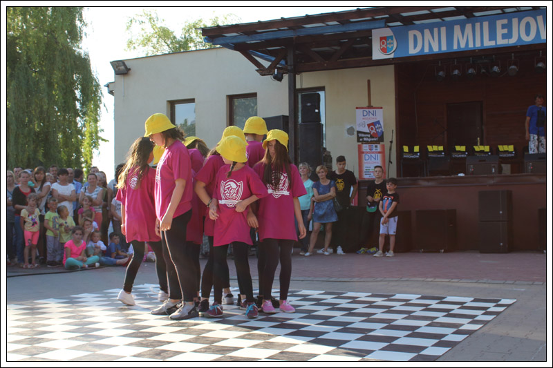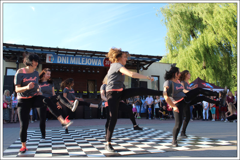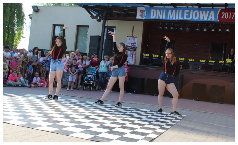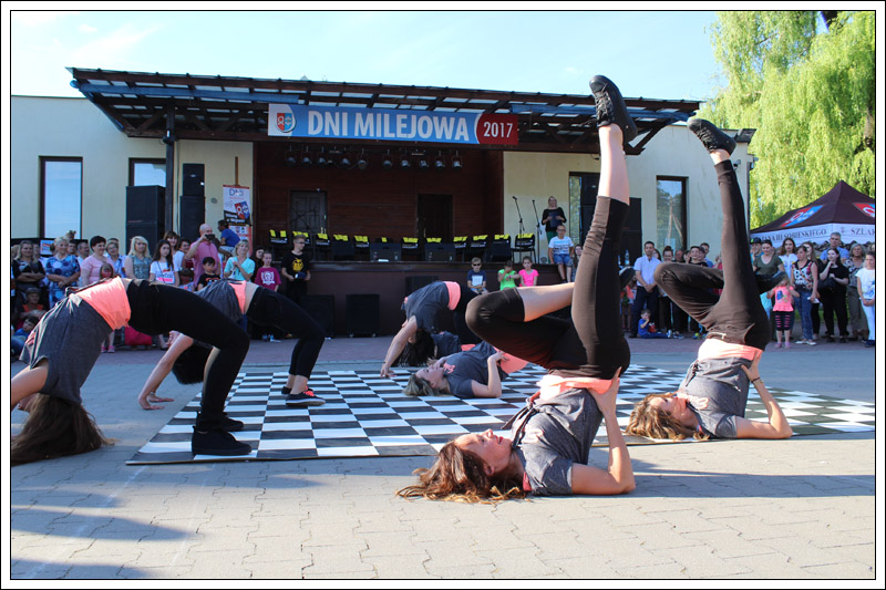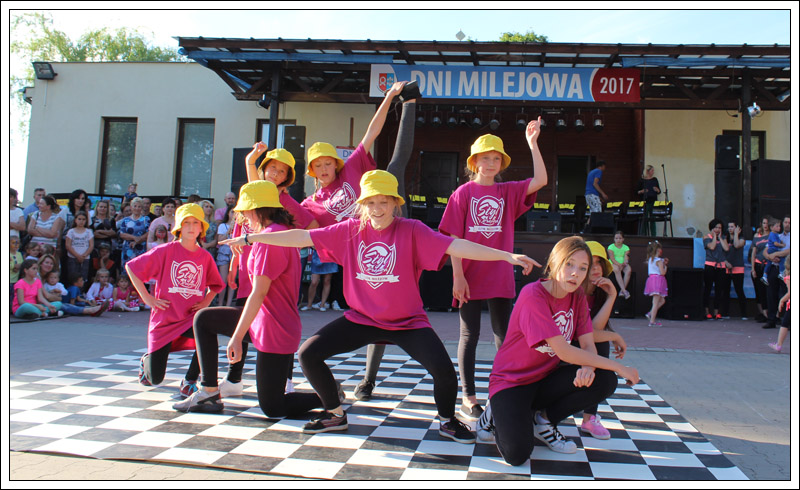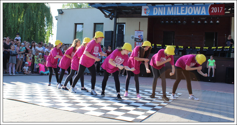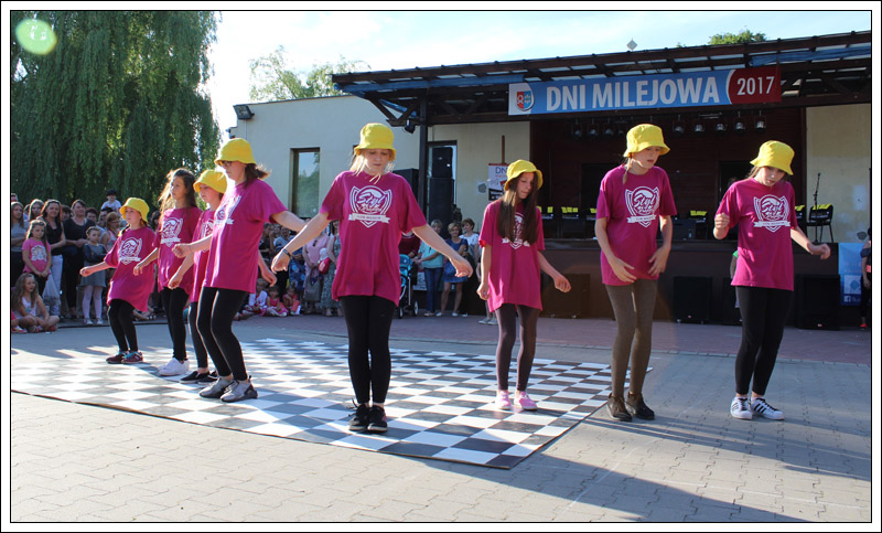 DNI MILEJOWA – TANECZNIE ZDOMINOWANE11 czerwca 2017r.W tym roku Dni Milejowa nastąpiły znacznie wcześniej. Plan był taki, że jak zrobimy w tym roku wcześniej to nie zdublujemy się z innymi imprezami. Pomyślało jeszcze 3 miejscowości. Na szczęście mieliśmy jednego z bardziej znanych wokalistów Disco Polo to też i frekwencja dopisała. W tym roku ponownie na naszej patelni królował taniec. W dodatku było go jeszcze więcej niż w zeszłym roku. Zaczęło się od najnowszego narybku, czyli grup taneczno rytmicznych prowadzonych przez Boogie. Z młodszej grupy zaprezentowała się tylko jedna dziewczynka - wielki szacunek i wielkie brawa za odwagę. Starsza grupa natomiast zrobiła już grubszą rozpierduche. Ich stroje i energia przypominały mi bardzo pierwszy występ Bez Nazwy. Oby ich historia potoczyła się równie owocnie, co tych wariatów, którzy nie doczekali się swojej nazwy po dziś dzień.