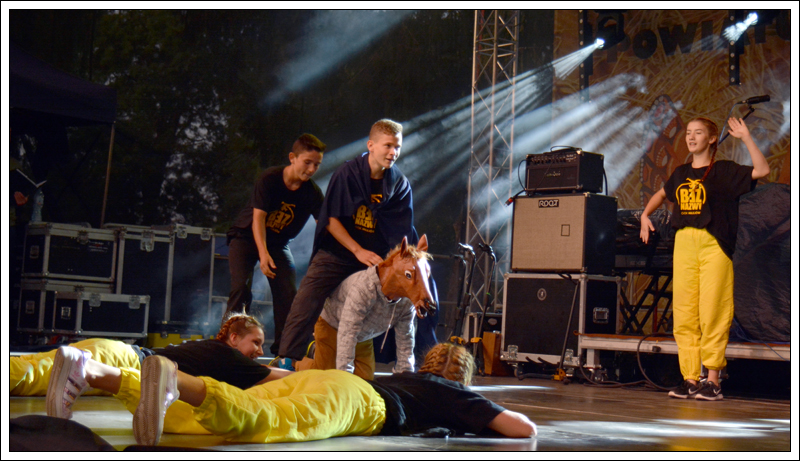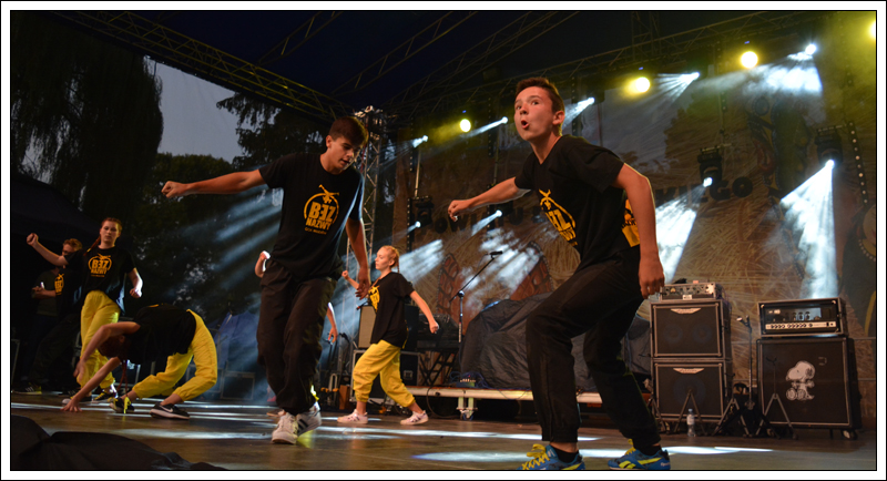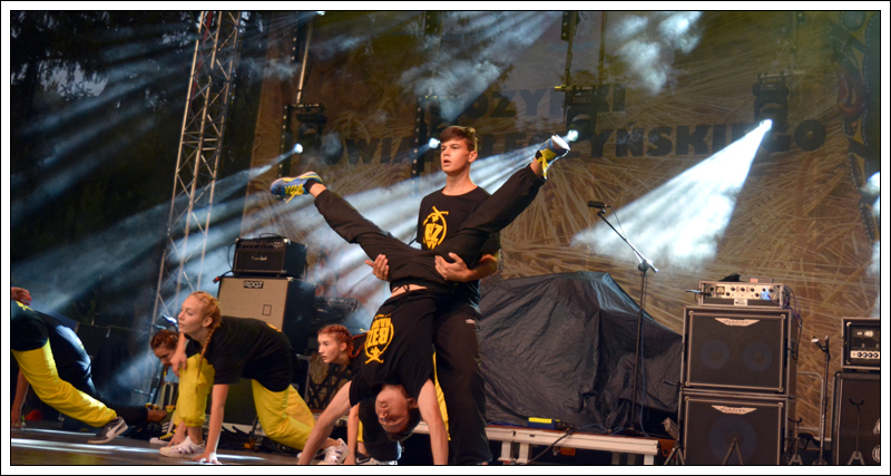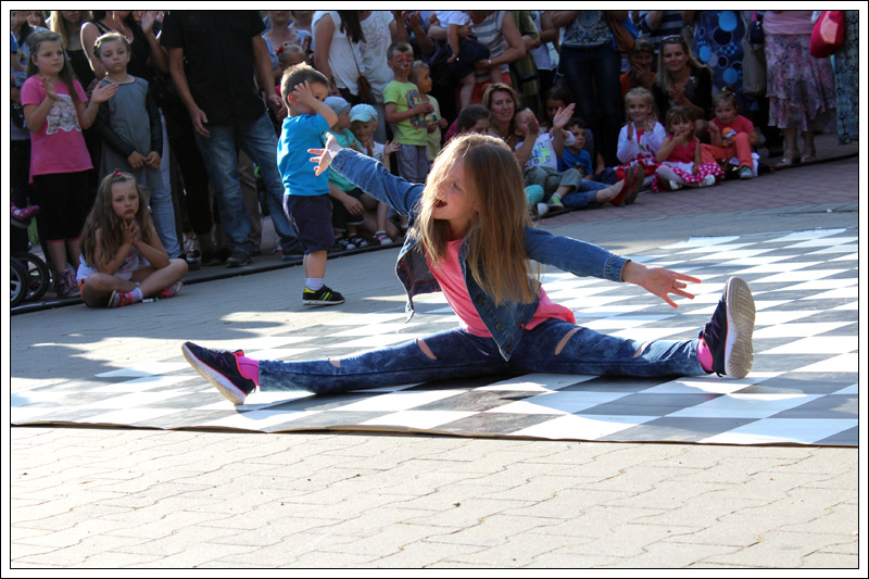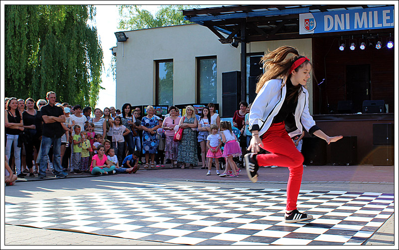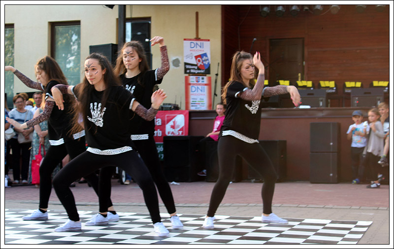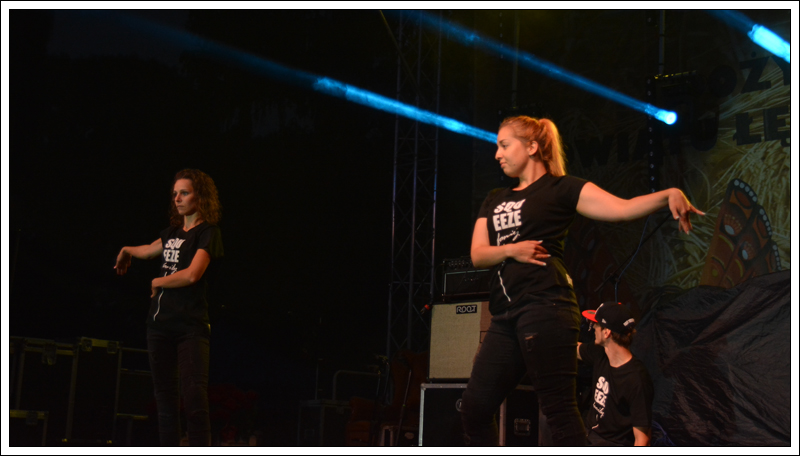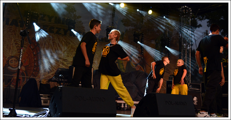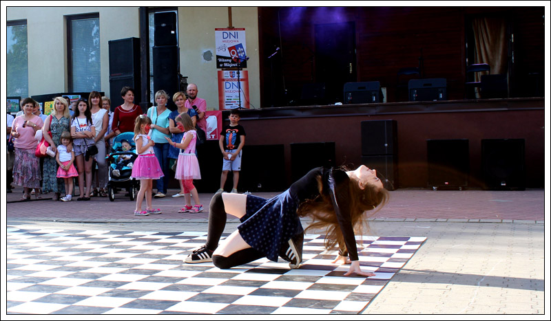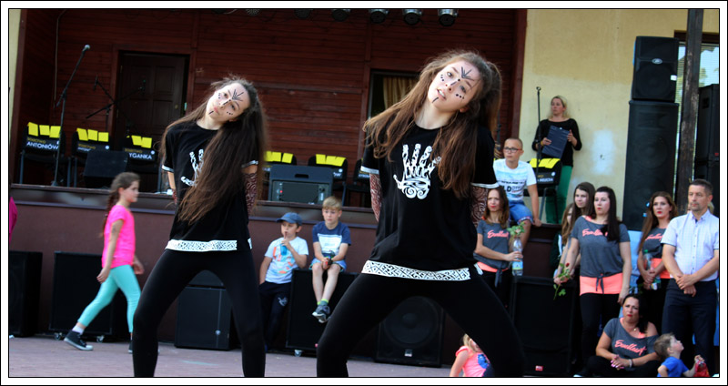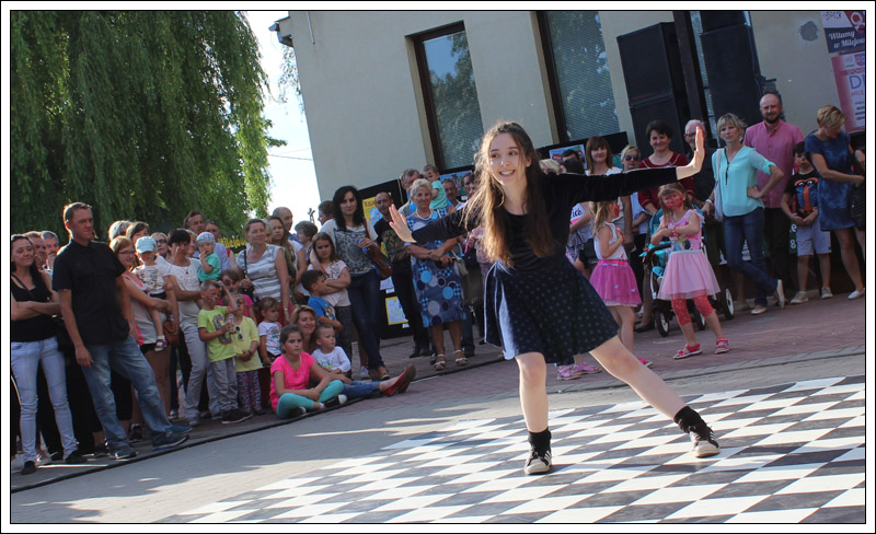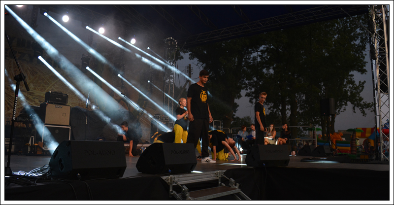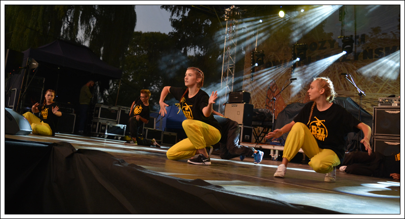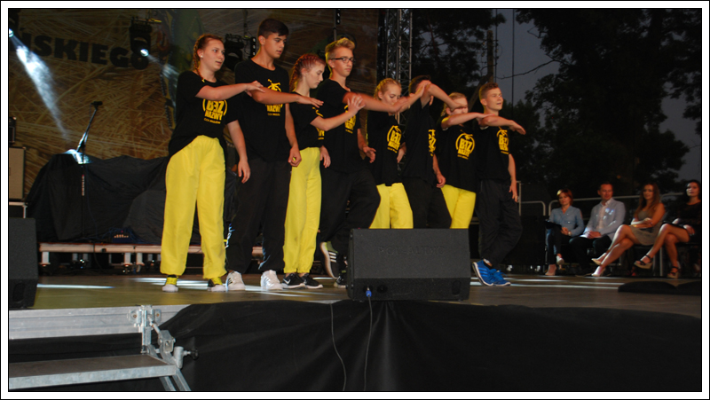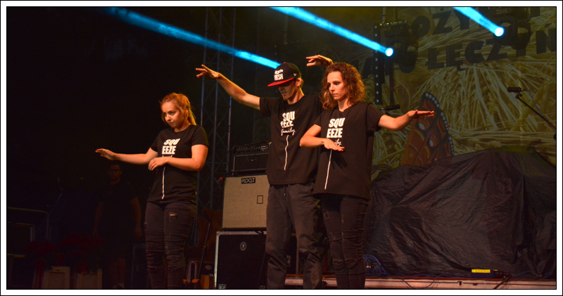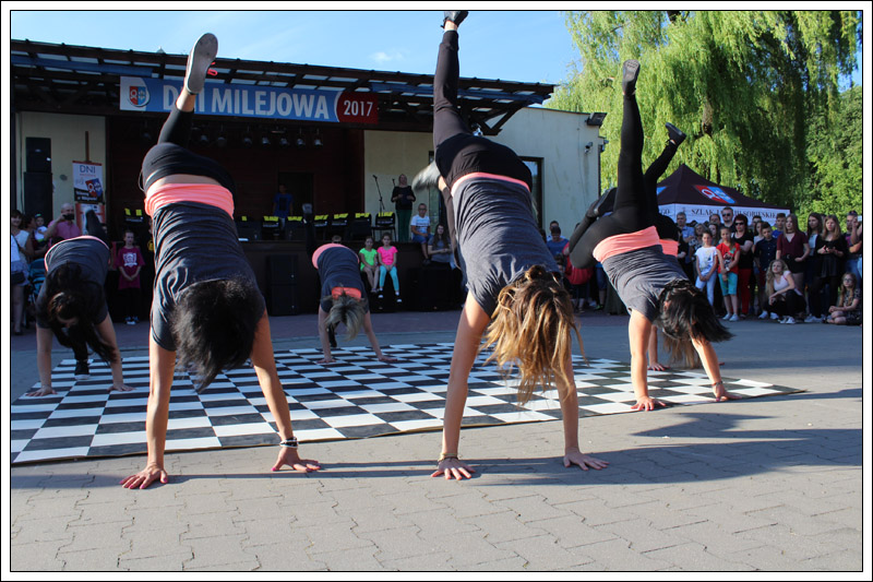 Później zaprezentowali się moi soliści, którzy startowali w Puławach: Pati, Emilka, Wera i Paula. Swój występ odpuścił Fifi, który miał kontuzje kolana i poświęcił się dla dobra układu z ekipą. Kolejny pokaz, to nasz nowy GOKowy nabytek będący projektem połączenia Boogie i Twinsów, czyli trio SUSSY CREW. Dziewczyny dały czadu, pomimo małych problemów technicznych, czego następstwem była próba zabicia nagłośnieniowca. Zaraz po SUSSY przyszła pora na nasze gwiazdy z ekipy "Styl I Kropka". Dziewczyny swoim ciepłem, uśmiechem i energią wprowadziły całą widownie w świetny nastrój. Po stylowych dziewczętach w fuksjowych koszulkach nastała pora na gwóźdź programu, no dobra - jeden z kilku gwoździ. Na tych Dniach Milejowa miało miejsce wyjątkowe wydarzenie. Pierwszy w historii Milejowa występ grupy HIP HOP 30+. Ekipa "Mamy Hip Hop", bo tak się nazywają, to 7 kobiet o niesamowitej energii i fantastycznym podejściu do życia. Dziewczyny bardzo się stresowały, nie obyło się bez płynnego rozluźnienia. Koniec końców, dziewczęta dały takie show, że czacha dymi. Choreografią "Pierwsze wejście" rozgrzały parkiet. Nie dość, że dały z siebie najbardziej pozytywna energię, jaką widziałem od kilku lat, to jeszcze zgarniają najwięcej wyświetleń na YouTube. Zaraz po najbardziej Hip Hopowych mamach wystąpiła ekipa SQUEEZE z choreografią "Set Me Free". Cóż mogę powiedzieć, poza tym, że wszystko poszło zgodnie z planem. Tańczyło mi się bardzo przyjemnie i nad wyraz luźno. Kolejne były dziewczyny z FUNKY FAME z choreografią "Taniec ma Tysiące Definicji"- dziewczyny jak to dziewczyny. Profesjonalnie zapewniły ciarki na plecach oglądających. Przyjemnie patrzeć, jak duży progres zrobiły, jak bardzo mocno osiadły w hip hopowo breakingowej stylówie. Na koniec oczywiście BEZ NAZWY i ich wyjątkowa choreografia "Nasza wizja Tańca", która była dosyć ryzykownym przedsięwzięciem na zawody, ale w przypadku pokazów byłem pewien, że siądzie wyśmienicie. I tak też się stało, smakowała jak dobry goferek z bitą śmietaną. Cieszę się, że wszystko przebiegło tak dobrze i że pogoda dopisała. Widzimy się za rok. Mam taką nadzieję.