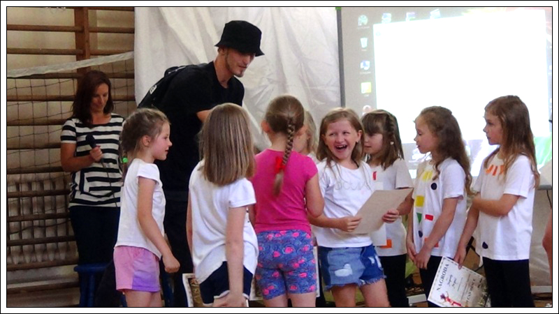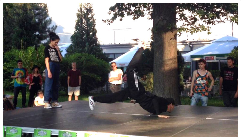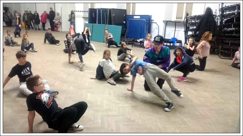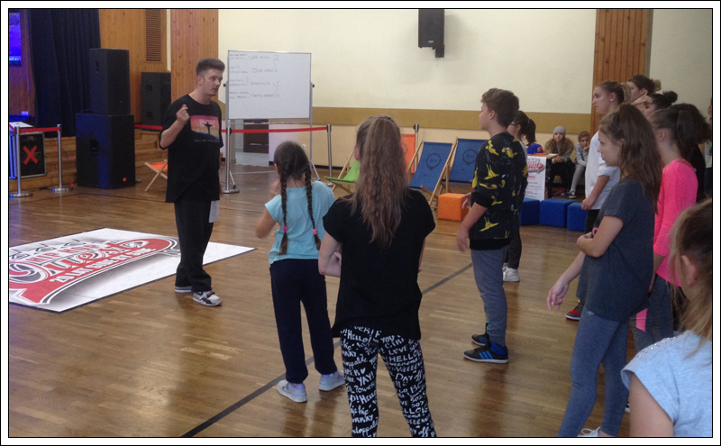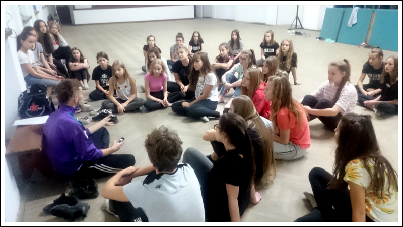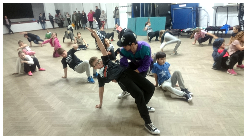 Wiele razy już powielał się standardowy schemat... poznaję kogoś bardzo dawno, utrzymuję z tą osobą kontakt, ale tak bardzo delikatnie. Po latach nasze drogie zbiegają się ponownie i pojawiam się u tej osoby w mieście przekazując wiedzę jej podopiecznym. Uwielbiam te uczucie gdy działanie staje się naocznym dowodem na to jak silne więzi potrafi zostawić Hip Hop. Aneta to osoba zakręcona która swoje korzenie ma w tańcu orientalnym a dokładnie to specjalizuje się w tańcu brzucha! Swoją pasję do falowania brzucha przelała na inne style i tak trafiła na Hip Hop. Bardzo długo działała w okolicach Zamościa a obecnie jej nauczenia skumulowało się w okolicach Krasnobrodu. To fantastyczna osoba której dzieciaki naprawdę pragną wiedzy. Na miejscu byłem godzinę wcześniej, dzięki czemu mogłem zwiedzić pobliski zalew na którym o tej porze roku hulają wyłącznie dzikie lisy - dosłownie. Dostałem pod skrzydła 20 sztuk zajaranych tańcem łobuziaków o różnym poziomie zaawansowania! Pracowało mi się z nimi naprawdę dobrze, widać, że dzieciaki te są głodne wiedzy i głodne świadomości ciała. Breaking, pomimo trzech godzin minął bardzo szybko a dzieciaki nie umarły ze zmęczenia. Najlepiej przyjęła się natomiast Praktyka Ruchu - standardowo. Cieszę się, że mogłem zobaczyć jak dzieciaki dzielnie radzą sobie podczas pierwszej styczności z Praktyką Ruchu. Pomimo mojego zmęczenia, udało się spędzić ten dzień energetyzująco. Oby więcej takich dni!