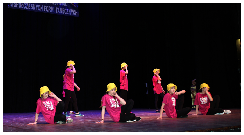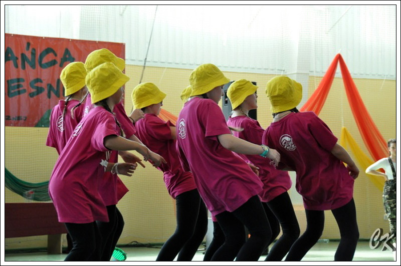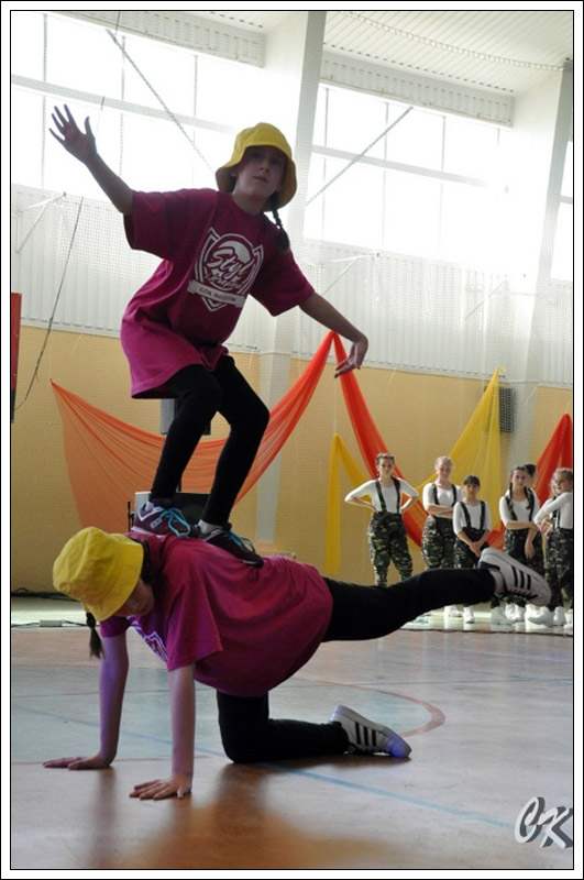 Pierwszy występ kategorii 12-15 lat należał do ekipy Styl i Kropka. Z jednej strony dobrze jest być pierwszym i mieć z głowy, z drugiej jednak strony wiem, że sędziowie nie pamiętają pierwszych występów. No trudno - takie życie. To był debiut Stylu i Kropki na scenie w tym roku i w takim składzie. Dziewczęta poradziły sobie świetnie, widać było po nich strach jak i "zbyt duże" opanowanie. Dostrzegłem także pewne minusy tej choreografii, których poprawienie staje się obecnie priorytetem. Sam występ miał również plusy, takie jak synchronizacja, która pomimo tak słabego zgrania ekipy była bardzo dobra. Wszytko było wytańczone w muzyce a całość oddała klimat. Powili dostrzegam, w którą stronę iść z tymi małymi łobuziakami.