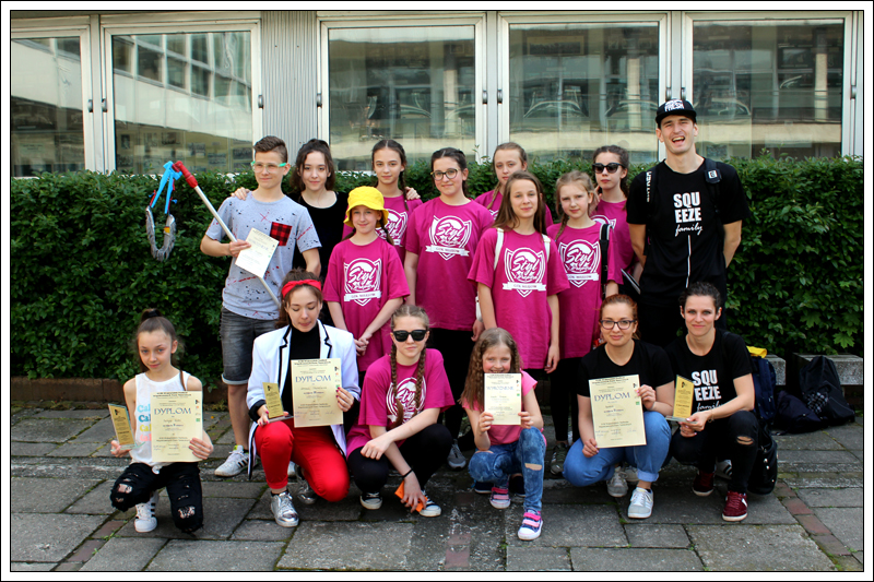 PUŁAWY ZNOWU W MILEJOWSKIM SMAKU…6 maja 2017r.Dwa lata temu w Puławach triumfowało SQUEEZE. W zeszłym roku wróciliśmy z Puław ze sporą ilością osiągnięć i triumfami BEZ NAZWY oraz FUNKY FAME. W tym roku ponownie pojechaliśmy na ten turniej, tym razem bardzo okrojonym składem. BEZ NAZWY nie mogło startować ze względu na zeszłoroczną wygrana a Funky Fame nie mogło wystartować ze względu na urodzinową imprezę jednej z tancerek. Cóż, w tym roku reprezentowały nas dwie ekipy SQUEEZE i STYL I KROPKA a dodatkowo zabraliśmy solistów i wyruszyliśmy na podbój Puław. Turniej ma bardzo dobrą organizację, same reguły przeglądu są także bardzo sensownie ustalone. Soliści nie tańczą, jak bydło hurtem po 300 osób a pojedynczo. Starsza kategoria wiekowa nie ma ograniczeń wiekowych, nie ma także limitu osób na formacje, nawet duet może tam startować jako formacja. To bardzo fajne, bo nie ogranicza nikogo. Jury również zawsze jest starannie dobierane i na miejscach sędziowskich siedzą ludzie naprawdę znający się na rzeczy. Pomijając ten nieprzyjemny epizod, same zawody przebiegły bardzo pozytywnie, oczywiście mogło być lepiej, ale i tak tancerze spisali się nieźle. W kategorii do lat 13 wyróżnienie wywalczyła Emilia Roczon, która zatańczyła swoją debiutancką choreografię „Barbi”. Drugie miejsce w tej kategorii wywalczyła Patrycja Kubić, którą od 2 lat szkole indywidualnie. Zatańczyła choreografię „Niegrzeczna Dziewczynka”. Warto wspomnieć, że pierwsze i trzecie miejsce w tej kategorii również wywalczyły dziewczęta, które uczę, ale w Estradzie Chełm. W kategorii solistów powyżej 14 lat wyróżnienie wywalczył Filip Kucybała za choreografię „Luźno”, natomiast trzecie miejsce wywalczyła Weronika Stanisławek prezentując choreografię „Dziewczyny Lubią Funk”. Warto wspomnieć, że wyróżnienie i drugie miejsce w tej kategorii również wywalczyły moje podopieczne z Estrady Chełm. W kategorii Formacji powyżej 14 lat udało nam się wywalczyć II miejsce, czym ekipa SQUEEZE zbliżyła się do wyniku z przed dwóch lat. Niestety Styl i Kropka ponownie poniósł klęskę. Werdyktów w tej kategorii wiekowej kompletnie nie rozumiem. Nie będę tego nawet komentował. Podsumowując to był dzień pełen zmiennych emocji: śmiech, radość, rozgoryczenie, złość, czyli pełen wachlarz uczuć budujących nas ludzi takimi, jakimi jesteśmy. W życiu jak w tańcu, każdy ma swój groove. Patrzymy w przód i żyjemy dalej.
