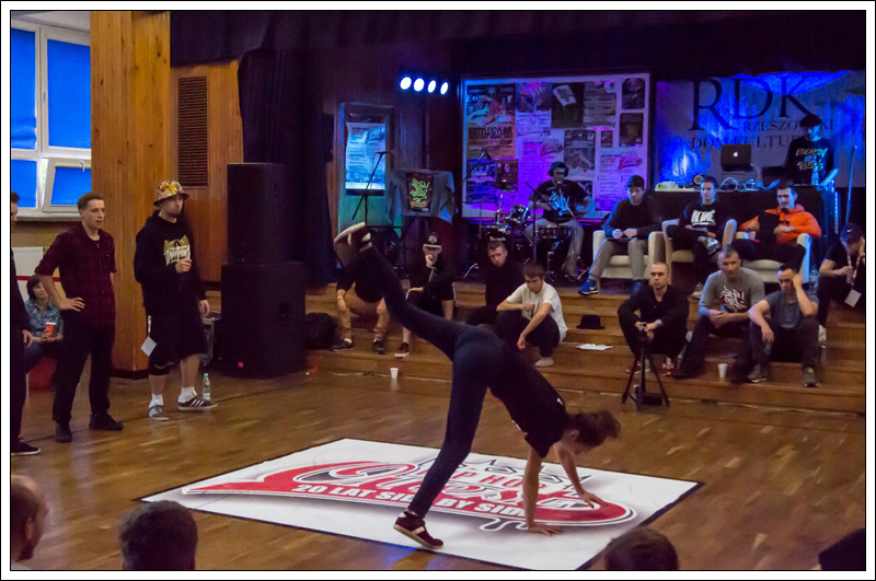 Moi tancerze praktykowali Hip Hop a ja miałem okazję porozmawiać z Corasem - założycielem Side by Side. Wspaniały i inspirujący człowiek powiedział mi wiele rzeczy. Tak wiele, że już połowy nie pamiętam, ale możecie być spokojni - nie zostawię tego tematu tak bez echa i coś z tego powstanie. Obiecuję. Po warsztatach z Polskim odbyły się warsztaty Graffiti. Miałem ogromną chęć na nie pójść, ale koniec końców odpuściłem – wygrał głód. Obecnie trochę tego żałuję, ale to taka nauczka, by kolejnym razem nie rezygnować. Po powrocie z obiadu rozpoczynała się kategoria Kids Battle. Poziom nie był wysoki, ale za to energia tych dzieciaków zrobiła robotę - dało mi to mocy na koleje godziny. Odbył się również panel dyskusyjny, o którym napiszę na samym końcu, ponieważ będzie idealnym podsumowaniem całej wyprawy. Po walkach dzieciaków nastał czas na kolejną "główną" część turnieju, czyli All Styles. Jak to zazwyczaj bywa w All Styles i tutaj się działo naprawdę grubo. Wystartowałem w parze z Werą jako "Ta i Ten" a Boogie startowała z Fifim. My odpadliśmy w pierwszej rundzie z naszym Lubelskim NBDS'em w składzie Bestroskee i Zazu. Dobra to była walka, nie żałuję ani jednego movesa. Natomiast Boogie i Fifi przeszli do drugiej rundy, gdzie musieli uznać wyższość rywali.