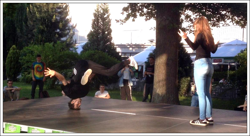 Wyjechaliśmy w sobotę z samego rana i przyznam szczerze, mieliśmy nie małe lęki o to, czy zdążymy dojechać na miejsce przed zapisaniem się 40 par - tyle wynosił limit. Na szczęście udało się bez większego problemu. Po przyjechaniu ujrzeliśmy mnóstwo znajomych i przyjaźnie nastawionych twarzy, Hip Hop było czuć w powietrzu. I tutaj muszę wspomnieć o lokalizacji - miejsce naprawdę fantastyczne i klimatyczne na takie zawody - doskonały wybór. Dobraliśmy się w dwójki: Naniśka + Fifi, Wera + Boogie no i ja z ziomkiem, którego ksywki nie znam. Walki eliminacyjne przebiegły szybko, było wiele emocji i wspaniałej zabawy. Zarówno nasza pierwsza jak i druga ekipa nie wyszła z pierwszego etapu eliminacji. Moi tancerze trafili na ukraińskie ekipy, których poziom był naprawdę wysoki. Ja z tym bezimiennym ziomikem dotarliśmy do drugiego etapu, gdzie również odpadliśmy przez co siłą rzeczy zamieniliśmy się z aktywnie tańczących w aktywnie propsującyh. Bitwy były na naprawdę wysokim poziomie a finał, ten poziom jeszcze wywindował. Jednym z najważniejszych momentów imprezy było oczywiście świętowanie 20 lat Side by Side - uroczyste „sto lat” i urodzinowe sety zaserwowane przez każdego z członków tej bandy przy akompaniamencie beatboxu Muza Mana sprawiły, że każdemu natychmiast przypomniało się, czym jest hip hop i o co w nim chodzi. Misz-masz DJ-ski sprawił, że muzyka była co najmniej tak zajebista, jak MC prowadzący imprezę - Sierber&Mąka naprawdę dali radę! Po zawodach udaliśmy się do naszego motelu, zastawić rzeczy i odpocząć sekundę przed afterem.