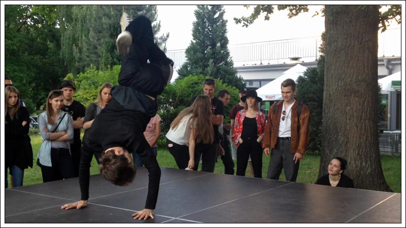 CATCH THE FLAVA - Kraków i legendy Breakingu23-27 lipca 2017r. Po tylu latach tańczenia obozy breakingowe to dla mnie nadal egzotyczna kwestia i wcale nie z powodu niedostępności, czy mojej nie chęci a raczej z powodu ceny, która chociaż wydaje się nie wielka, to potrafi lekko przytłoczyć przeciętnego tancerza, który jest również głową rodziny. Postanowiłem, że jeśli uda mi się zarobić pełną kwotę na obóz "dodatkowo", pracując na zleceniach, których normalnie bym nie brał, to pojadę a jeśli nie uda mi się tego dokonać - odpuszczę. Na szczęście udało mi się to. Co prawda z lekką pomocą Praktyki Ruchu, ale uzbierałem dodatkowe pieniądze. Ostatni "Breaking Camp" z przed kilku lat wspominałem bardzo dobrze. Tutaj chciałem się pojawić, ponieważ zależało mi na poznaniu kilku zaproszonych gości. Nie ukrywam, że pojechałem tam dla Poe Onea, Caspra i Hat Solo. Wbrew pozorom sam pomysł był bardzo spontaniczny. Po prostu pomyślałem, że pojadę i się stało. Nie wiedziałem co mnie czeka, nie wiedziałem czy nie będę żałował. Na szczęście cała impreza miała miejsce w Krakowie, to dla mnie zawsze łatwiejsza opcja niż zagraniczny wyjazd. 26 lipca byłem już na miejscu, w sumie dojazd nie był jakiś tragiczny, ale remonty na trasach tramwajowych dały mi się delikatnie we znaki. Zabawne jest to, że ludzie w dużych miastach całkiem inaczej pojmują odległość. Pytając ich, gdzie mam się udać informują mnie, że muszę najpierw dotrzeć do punktu A, z którego dopiero dojadę do punktu B. Na pytanie, czy do punktu A jest daleko słyszę, że bardzo i że lepiej zaczekać na MPK. Zawsze pytam co najmniej 3 osób, bo zdarzało mi sie już, że ktoś mnie pokierował źle.
