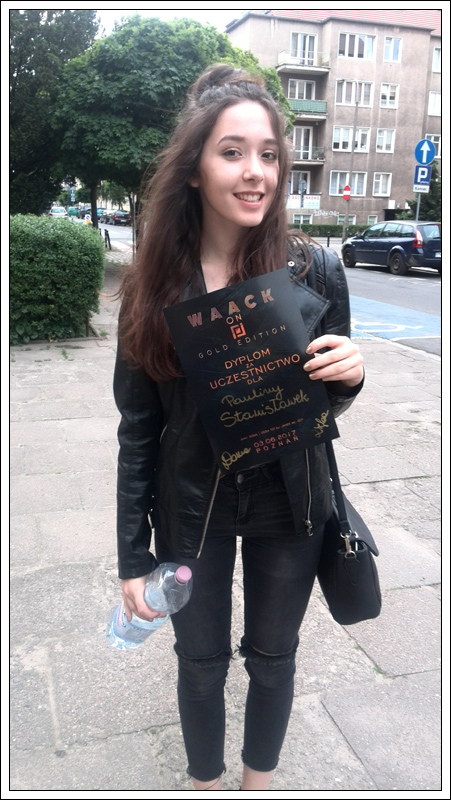 Cały jam był dla mnie cudownym doświadczeniem. Po raz pierwszy spotkałam się z tak dobrą atmosferą. Wszyscy tańczyli ze sobą bardzo pozytywnie nastawieni, potrafili chwalić siebie nawzajem i bawić się mimo różnego wieku, poziomu i doświadczenia. Oglądając i jednocześnie ucząc się od innych, uśmiech praktycznie nie schodził mi z twarzy. Na zakończenie tej części zawodów zrobiliśmy spontaniczny soul train - całe mnóstwo zabawy, radości, śmiechu i stylowego attitud. Następnie, po krótkiej dogrywce i godzinnej przerwie przeszliśmy do dalszej części zawodów, która polegała na walkach 1vs1. Zawodnicy tańczyli po jednym lub dwóch wyjściach a także razem, próbując zdobyć uznanie zarówno sędziów jak i pozostałych tancerzy. Bardzo podobało mi się wsparcie na jakie mogły liczyć osoby zmagające się na parkiecie. Jeżeli zrobiłeś coś dobrego, oklaski i krzyki publiczności mówiły Ci o tym od razu. Ludzie naprawdę dawali z siebie wszystko, połączenie techniki, muzykalności i emocji jakimi się dzielili sprawiało, że nie dało się oderwać wzroku. Po zaciętych walkach przyszedł czas na finał, poprzedzony pokazem sędziów - Zięba i Doma sprawiły, że w oczach pojawiły się łzy, a na skórze ciarki. Po poznaniu wyników nastąpiło wręczenie dyplomów, nie obyło się także bez licznych podziękowań i wzruszeń. Podsumowując, jestem bardzo szczęśliwa, że mogłam wziąć udział w tym wydarzeniu. Cały ten weekend dostarczył nam mnóstwo zabawy, nauki, inspiracji i zajawki, którą postaramy się wykorzystać jak najlepiej. Wielkie brawa należą się wszystkim organizatorom, ponieważ z pewnością kosztowało ich to wiele pracy, wysiłku i poświęcenia. Cieszę się, że takie eventy są organizowane, pomimo tego, że scena waackingowa w Polsce dopiero zaczyna się rozwijać - tak jak to zostało wspomniane na zawodach, każdy z nas musi się starać i tworzyć, żeby tego potencjału nie zmarnować. Na koniec chciałabym bardzo podziękować Werce i Boogie, za to że chciały spędzić ze mną ten czas i umożliwiły mi uczestniczenie w tych zawodach. Każdy taki wyjazd łączy nas jeszcze bardziej, jest to mnóstwo radości i nowych wspomnień, cieszę się mogąc dzielić je właśnie z Wami.