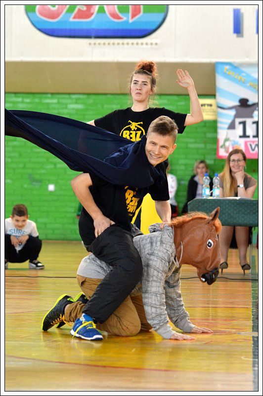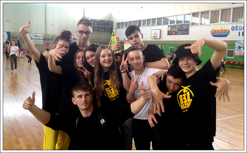 Złoty Promień padł na BEZ NAZWY22 kwietnia 2017 r.Kolejny tydzień przed nami i kolejne zawody. Tym razem całkiem niedaleko Krasnegostawu, gdzie ostatnio triumfowały Funky Fame. Na tych zawodach niestety nasze cztery niewiasty nie mogły się zaprezentować. Regulamin nie pozwalał na start zespołom poniżej 6 uczestników. Swoją drogą przepis bardzo nie fajny, bo co za różnica czy ekipa liczy 4 czy 6 osób, skoro porywają się w 4 osoby na 30 osobowa ekipę to przecież ich sprawa. Koniec końców mamy tu jeszcze dwie ekipy, które liczebnie wpisują się w standardy Zamojskiego Turnieju. Mowa oczywiście o 11 Wiosennych Spotkaniach Tanecznych, które odbywają się w Zamojskim MOSIRze. Razem z ekipą BEZ NAZWY i z ekipą Styl i Kropka wyruszyliśmy już o 8 rano. Obydwie ekipy, jechały tam z ogromną nadzieją. Styl i Kropka po ostatniej porażce wyciągnął wnioski i wspólnie przerobiliśmy ich chorografię. Nowa miała większego kopa. BEZ NAZWY prezentowało tam zupełnie nową choreografię, która była dla mnie ogromną niewiadomą. A to dlatego, że jej zakończenie to zupełnie nowe podejście, całkiem nowatorskie... Na miejscu okazało się, że wszystko zostało podzielone na 3 kategorie wiekowe i w każdej kategorii znajdowało sie 16 zespołów. Łącznie: 812 tancerzy z 47 zespołów województwa lubelskiego prezentując 58 układów tanecznych. Już na pierwszy rzut oka było widać, że ilość tancerzy przekracza znacznie zeszłoroczną frekwencję. Ogromnym minusem jest fakt, że organizatorzy połączyli kategorie Hip Hop z tańcem współczesnym. Nie mam bladego pojęcia jakimi kryteriami sędziowie oceniają tego typu występy skoro to zupełnie różne światy, rządzące się zupełnie różnymi prawami. Ja podziwiam, bo osobiście nie wiedziałbym, co z tym zrobić. Podsumowując, ten wyczerpujący dzień: Styl i Kropka ponownie nie wywalczył nic, jakkolwiek tym ostatnim razem faktycznie zebrali baty, tak tym razem w moim mniemaniu poradzili sobie spokojnie na miejsce na podium. Niestety się nie udało, mówi się trudno i tańczy się dalej. Natomiast BEZ NAZWY wywalczyli "Złoty Promień", czyli główną nagrodę w najstarszej kategorii wiekowej. Ogromnie się cieszę, że ich praca przyniosła efekty. Dodatkowo bardzo się cieszę, że chorografia została odebrana pozytywnie. Czas mija, my się rozwijamy, zbliża się maj. Nasi soliści już przygotowują się na Puławy.