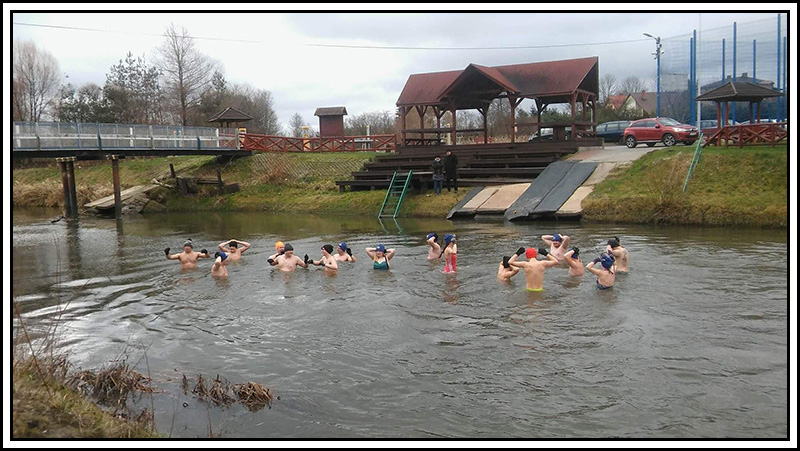 5 stycznia 2020r.Zima roku 2019 była dla nas swojego rodzaju testem. Zaczęliśmy się oswajać z zimnem poprzez chodzenie boso po śniegu podczas treningów na sali. Zimne prysznice, a nawet włączyliśmy w nasze treningi metody oddechowe Wima Hoffa i przyznam szczerze, że efekty były odczuwalne. Prawie wcale nie chorowaliśmy, nasze ciała czuły sie lepiej i bardziej świerzo, przez co nie mamy zamiaru z tego rezygnować. Od kiedy zobaczyłem jak pozytywne efekty przynosi ekspozycja na zimno ciągle myślałem o rozpoczęciu przygody z morsowaniem. Wspólnie z filipem weszliśmy do morza podczas naszego pobytu w Słupsku. byliśmy bardzo pozytywnie zaskoczeni - nie wiedzieliśmy jednak jak się do tego zabrać profesjonalnie. I jak zwykle z nieba spadła szansa. Na przystani w Jaszczowie pojawiła się zgraja regularnie kąpiących się ludzi. Zagadałem, wypytałem i tak to właśnie piątego grudnia zaliczyliśmy pierwszą oficjalna kąpiel ze Świdnickim Klubem Morsów - "Lodołamacz" - doznania niesamowite! I wiemy już, że to dopiero początek naszej przygody z morsowaniem.