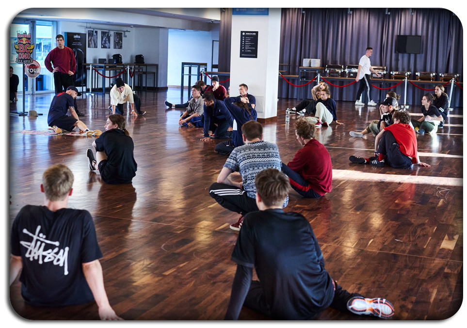 Jakie było nasze zdziwienie gdy dowiedzieliśmy się, że największe gwiazdy światowego Breakingu zawitają do Polski by przeprowadzić warsztaty i sparować się z miejscowymi B-Boys na parkietach trzech miast. Krakowa, Gdańska i Warszawy. Jeszcze większe było nasze zdziwienie gdy dowiedzieliśmy się, że warsztaty są darmowe. To ewenement na skalę światową. Oznaczało to dla nas nic innego jak spontaniczny trip do Warszawy. Cała Praktyka Ruchu zjawiła się w warszawie 17 września. Warsztaty odbywały się w sali VIP stadionu Legi.