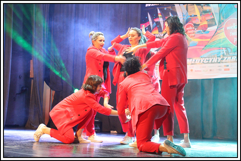 16 lutego 2020. Jako Praktyka ruchu zostaliśmy zaproszeni by uświetnić swoimi pokazami 8 Karnawałowe Spotkania z Tańcem Jazzowym, które odbywają się corocznie w Chełmskim Domu Kultury, a za ich organizacje odpowiada Sabina Englot założycielka grupy tańca jazzowego Ballo Art. Mieliśmy tam zaprezentować trzy choreografie: "Nasze Podejście", "Jeszcze Anioły Mają nogi i Kreatywność" oraz premierową choreografie pt. "Paleta emocji". Byliśmy świetnie przygotowani... Przyszły nam nawet nowe stroje, które specjalnie zamawialiśmy z zagranicy. Przymierzyliśmy je nawet, ale błędem było nie przetańczenie w nich ani razu choreografii. Cała ta sytuacja przyczyniła się do najbardziej zabawnego występu jaki daliśmy w swoich życiach. Przynajmniej do tego czasu... bo wiadomo - wszystko jeszcze przed nami. Jak się okazało spodnie wytrzymały w kroku jedynie kilka pierwszych ruchów. Później trzeba juz było tańczyć tylko z bokserkami na wierzchu. Z lekkimi korektami wprowadzanymi na żywo. Przetańczyliśmy układ do końca. Śmiechu było co nie miara, a najgorsze, że musieliśmy się pokazać na scenie jeszcze dwa razy tego wieczoru. Pozostałe występy udały się tak jak planowaliśmy. A premierowa choreografia okazała się naprawdę fantastyczna dzięki czemu zrozumieliśmy jak wielki potencjał w niej drzemie... Takie doświadczenia na scenie również są potrzebne ponieważ wyciągnęliśmy z tej lekcji wiele informacji zwrotnych. Mamy nauczkę... dobrze, że śmieszna, a nie tragiczną.
