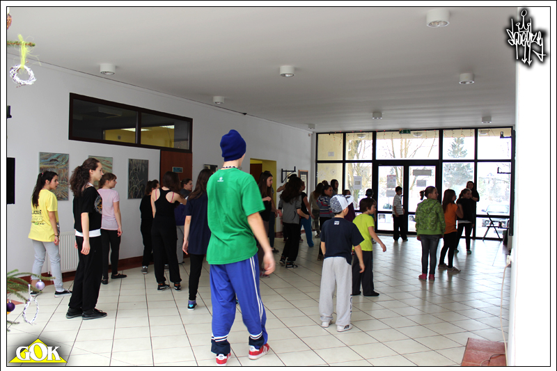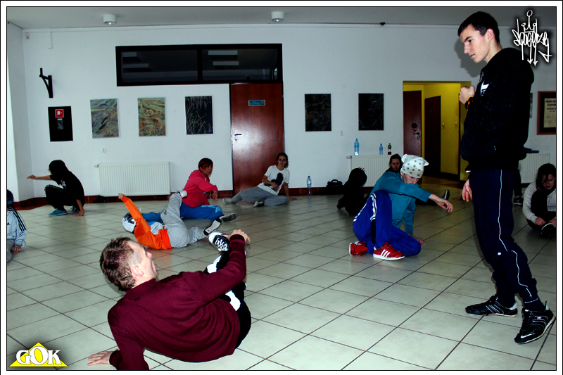 BBoying to styl, z którym Milejowscy tancerze obcują na co dzień. Dlatego też czekaliśmy na niego z wyjątkowa ciekawością. Poprowadził go dla nas Bboy Żurek ze Stalowej Woli. Warsztat Żurka nie należał do najłatwiejszych, szczególnie dla osób, które pierwszy raz miały styczność z Bboyingiem. Żurek w swoim warsztacie zaprezentował cała masę własnych patentów zahaczając o każdy z elementów bboyingu. Pokazał własne rozwinięcia i ulepszenia popularnych dropów (między innymi Knee Drop przyprawiony wykopem rodem z karate).
