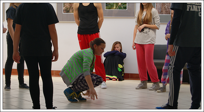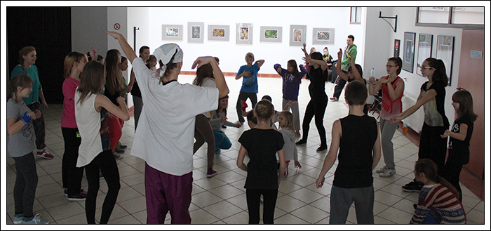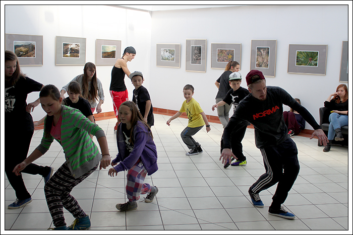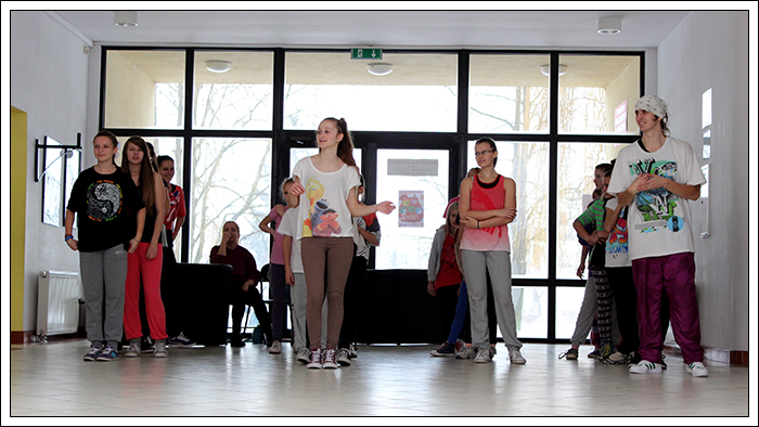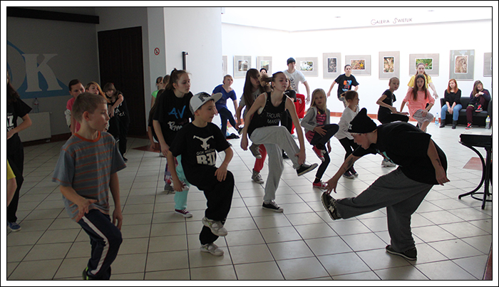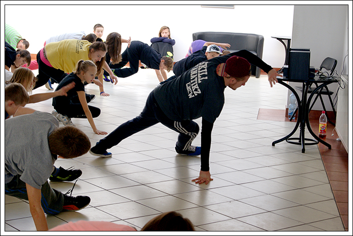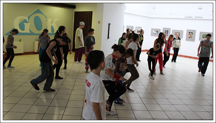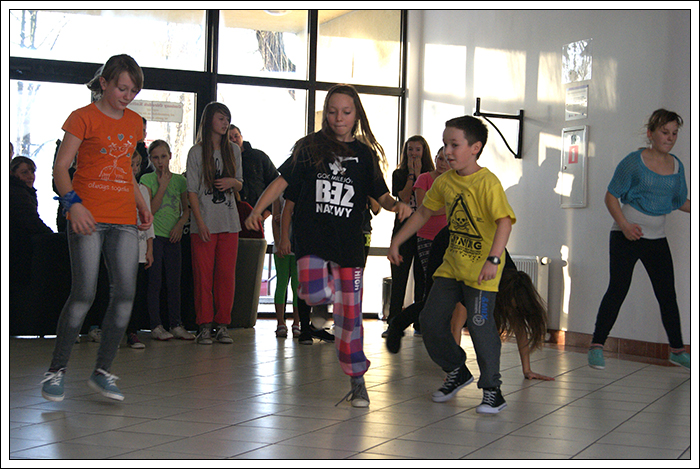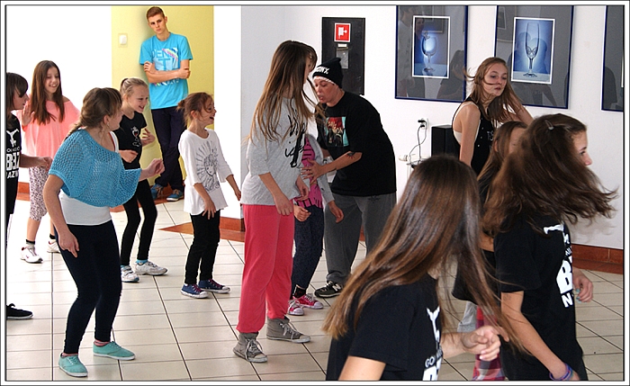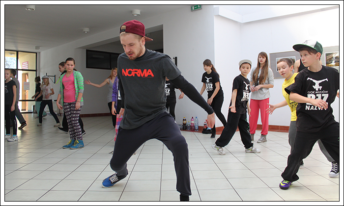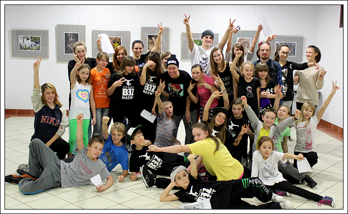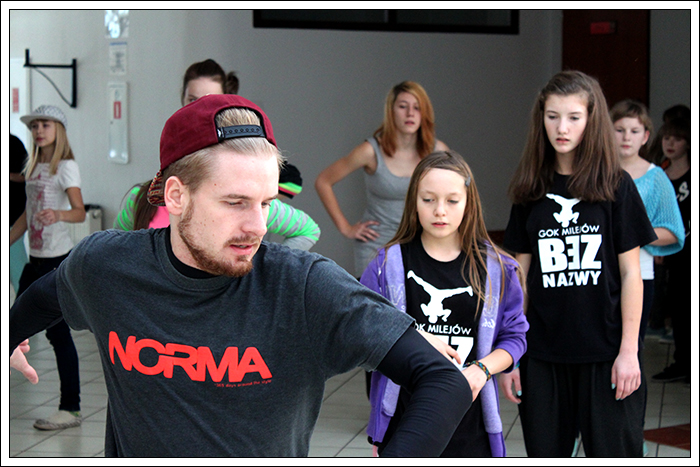 CHRISTMAS SQUEEZE 2 - Druga edycja Milejowskich Warsztatów Tanecznych7-8 Grudnia 2013r.To już druga edycja Christmas Squeeze 2 – mała, spontaniczna zeszłoroczna myśl przerodziła się tego roku w największy warsztat taneczny w całym powiecie a może nawet nieco szerzej. Jak na drugą edycję przystało, Gminny Ośrodek Kultury w Milejowie zaatakował podwójnie. Tym razem były to aż dwa dni radości, uśmiechu i ciężkiej pracy! Więcej gości, więcej tancerzy, więcej energii, więcej zaangażowania, więcej dobrej muzyki i więcej świątecznej miłości! Czyli wszystko, co najważniejsze w Hip Hopie tego dnia było czuć w powietrzu! Nie zatrzymujemy się nawet na chwilę, motywujemy, pracujemy i żyjemy tym, co robimy! Pora zanurzyć się głębiej, dlatego zobaczymy, co działo się pierwszego dnia, który w całości opanowała Akademia Tańca z Lublina, czyli tancerze z ekipy The Montaż! Yoaśka (The Montaż) - DANCEHALLGodzina: 10:00 - 11:30W Milejowie, na co dzień Dancehall stoi bardzo słabo, może dla tego, że Jamnik nie bardzo czuje się w tym klimacie. Od czasu ostatniego Christmas Squeeze troszkę Dancechallu jednak u nas było. W tym roku ten Jamajski styl poprowadziła Yoaśka. Osobiście to był drugi raz, jak miałam wielką przyjemność uczestniczyć u niej na warsztacie. Ona po prostu wpada na salę z taką energią i uśmiechem, że ciało samo tańczy! Po raz kolejny jestem bardzo zadowolona. Była możliwość podszkolenia się w ruchach, które już w pewnym stopniu opanowaliśmy, ale było też wiele nowych, trudniejszych. Z zebranych ruchów zrobiliśmy choreografię całkiem fajną i przede wszystkim mega ciekawą! Do tego trochę wiedzy o Dancehallu, by wiedzieć, co i jak. Wszyscy dawali sobie radę, nawet te najmniejsze dzieciaczki walczyły do końca i uśmiechy nie schodziły z twarz. Yoaśka (The Montaż) - WAACKINGGodzina: 11:30 - 13:00Waacking to obecnie jeszcze bardzo mało popularny styl tańca w Polsce. Waacking, jako styl tańca został wykreowany na początku lat 70 w undergroundowych klubach Los Angeles. Dwie główne inspiracje to muzyka disco, która wtedy królowała oraz tzw. "posing". Waacking stosunkowo szybko zaczął wychodzić z podziemi i stał się popularny dzięki tancerzom z programu Soul Train – Tyrone Proctor i Jeffrey Daniel's (tworzyli także pierwszą ekipę waackingowa - Outrageous Waack Dancers). Był to dla większości pierwszy raz z Waackingiem. Jako, że ja osobiście bardzo bardzo lubię ten styl, to też miałam z nim wcześniej styczność. Był to jednak mój pierwszy raz z Waackingiem zaserwowanym przez Yoaśkę. Tutaj również było dużo śmiechu. Wszystkie wykonywane ruchy i pozy miały być troszkę kobiece, co nie zawsze było łatwe. Waacki na różne sposoby i groove funkowy, który zmęczył każdego. Aby przećwiczyć pozy niczym z wybiegu dla modelek, mieliśmy za zadanie chodzić obok siebie patrząc sobie w oczy. Ręce bardzo bolały, ale było warto, ponieważ jest nowe doświadczenie w kieszeni. PRODZIŻ (The Montaż) - HOUSEGodzina: 13:00 - 15:00