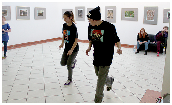 Ostatnią zaproszoną do nas osobą była jedna z obecnie najbardziej znanych polskich tancerek. Swoją sławę zawdzięcza całej masie tanecznych przedsięwzięć, w których brała udział. Od niedawna jest także jurorką show tanecznego „Got to Dance” – emitowanego w Polsacie. Tą tajemnicza osobą jest oczywiście Ania Jujka znaną wśród tanecznego świata jako YouYa Souldier. Jujka poprowadziła u nas dwie godziny Hip–Hopu. Na początku zajęć zrobiliśmy małą rozgrzewkę opierającą się na rytmie, groovie i luzie. Następnie zostaliśmy przemaglowani z ćwiczeń koordynacyjno – izolacyjnych. I tak krok po kroczku nadeszła pora na ruchy. Poznaliśmy sporo oldschoolowych ruchów takich jak: Kick it, Criss Cross, Bart Simpson, Skate, Roll, Running Man, The Filla (Rambo). Ćwiczenia były naprawdę różnorodne, zajęcia przebiegły w szachownicy. Czasem pracowaliśmy samodzielnie w szeregach, czasem jako grupa przemieszczaliśmy się po kole a jeszcze innym razem sami musieliśmy wymyślać choreografie. Warsztat skończył się oczywiście panelem dyskusyjnym, na którym Jujka stanęła oko w oko z gradobiciem pytań. Wszyscy uczestnicy dostali od cioci Jujki fantastyczny prezent, który na chwilę obecną pozostanie nasza słodką tajemnicą. Później jeszcze tylko autografy i milion pamiątkowych fotek, by wszyscy mogli w spokoju udać się do domów. Warsztaty z tak znanymi w świecie tańca osobistościami były kolejnym wielkim krokiem dla Milejowskiego tańca. Mam nadzieję, że wizyty takich ludzi zmotywują jeszcze bardziej naszą młodzież oraz dadzą im energię i zajawkę na całe życie! Dziękuję wszystkim przybyłym do nas tancerzom i instruktorom, za obecność i wspieranie tańca ulicznego w naszej miejscowości. Z dnia na dzień jest coraz lepiej i nie zapowiada się, by Milejowski płomyk tańca miał przygasnąć. Osobiście uczestniczyłem już w wielu warsztatach. Nigdzie jednak nie czuć tak wspaniałej, świątecznej i rodzinnej atmosfery jak tutaj. W tegorocznej edycji „świątecznego uścisku” przez nasz parkiet przewinęło się prawie 50 osób. Niestety wiele z zapisanych osób nie dotarło z powodu pogody. Gościliśmy ludzi z wielu okolicznych wiosek a także z Łęcznej, Lublina i Warszawy. Weekend ten był niebywale męczący, ale żadna osoba nie wyszła na jego koniec ze smutną miną!