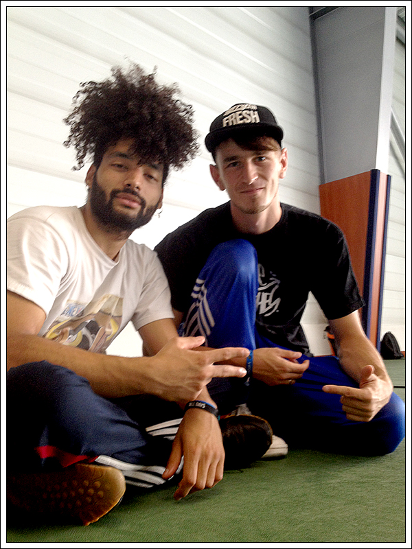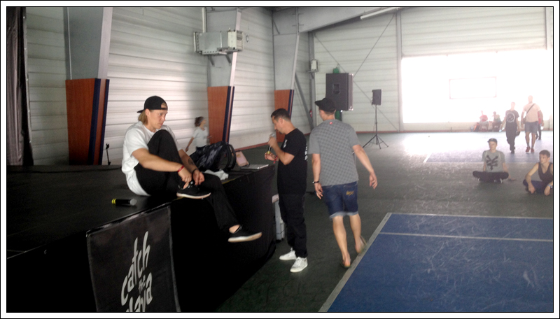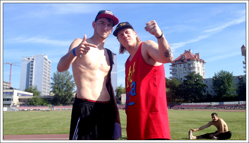 Poranek oznaczał pierwsze spotkanie z HAT SOLO. Nie wiedziałem czego mogę się spodziewać po tym gigancie z Finlandii. Liczyłem jednak skrycie, że Hat Solo da mi troszeczkę rad odnośnie tego, jak trenować jako „wysoki” B-Boy. Mam bowiem 182 cm wzrostu, to nie jest jakoś wybitnie dużo, ale w bboyingu średnia wzrostu jest raczej bliżej 160 (szczególnie w przypadku tych topowych bboys). Kiedyś mój nauczyciel z W-F tłumaczył mi, że uwarunkowania fizyczne sprawiają, że ludzie o konkretnej budowie ciała lepiej niż inni nadają się do konkretnych zadań. Hat Solo to ogromny człowiek, nie bez powodu nazywają go The White Gorilla. Jak się okazało, jego podejście do tańca jest bardzo, ale to bardzo mocno połączone ze sportowym duchem. Hat Solo opiera swoje skilsy na czysto sportowym podejściu, jest trenerem personalnym i przygotowuje plany treningowe począwszy od kobiet w ciąży kończąc na finlandzkiej drużynie narodowej NHL.