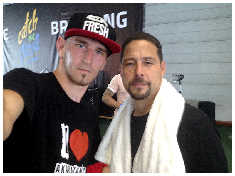 Były tam takie ćwiczenia jak: Rabbit jumps, Football run, oraz Little bear (najbardziej przewalone ćwiczenie świata) - polegało na przemieszczeniu się w przód w pozycji footworkowej poruszając najszybciej jak się da nogami, jednocześnie robiąc najmniejsze możliwe kroczki. Cały trening zakończyło ćwiczenie „from 10 to 1”, które obecnie jest jednym z moich ulubionych sposobów na siłkę. Polega na tym, że dobieramy się w pary i otrzymujemy 4 ćwiczenia. W tym przypadku było to dziesięć 6stepów w prawo i dziesięć 6 stepów w lewo, dziesięć pompek, dziesięć brzuszków i dziesięć leg switchów. Wykonujemy na zmianę z partnerem, gdy jeden z nas ukończy 10 powtórzeń każdego ćwiczenia robimy po 9, następnie po 8 i tak dalej aż do 0… Hat Solo wydaje się być wielkim człowiekiem – nie tylko z postury.